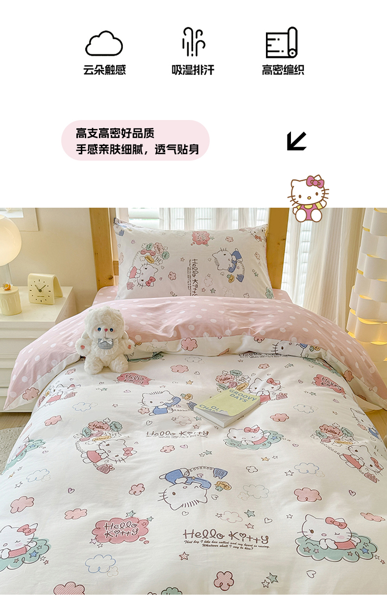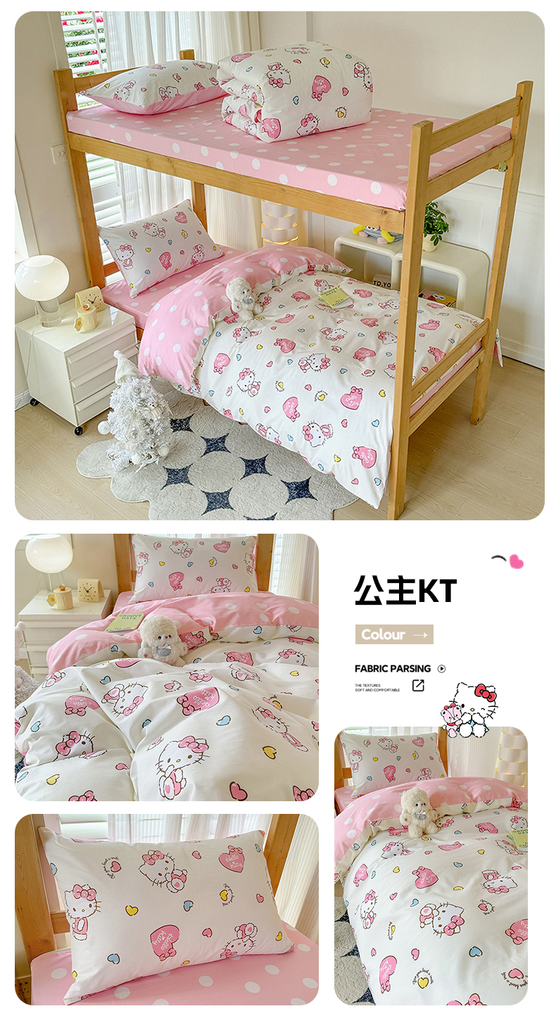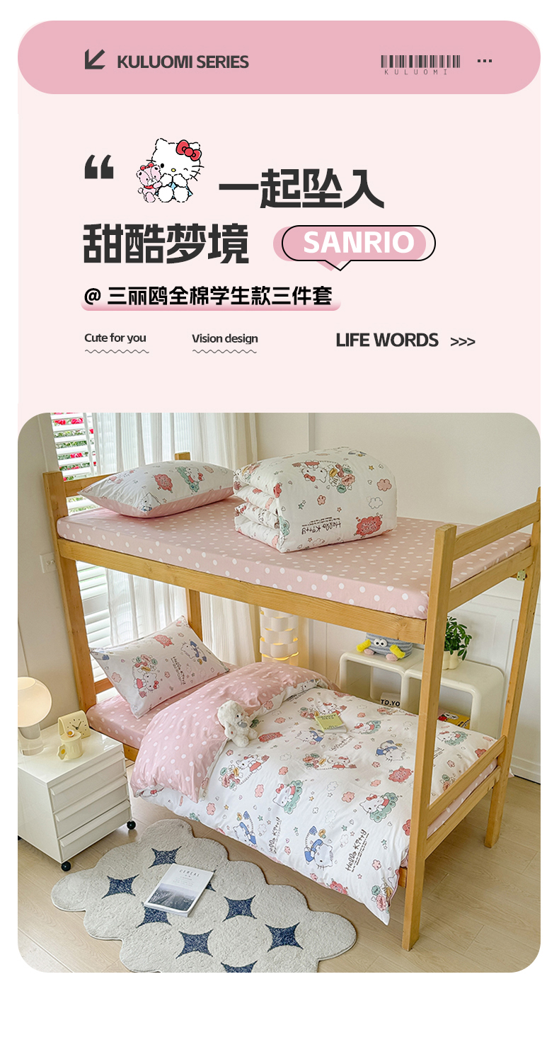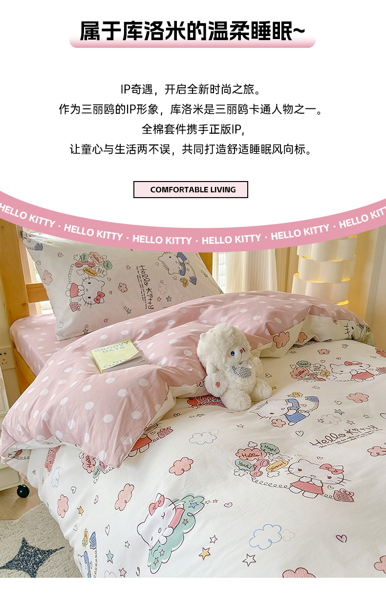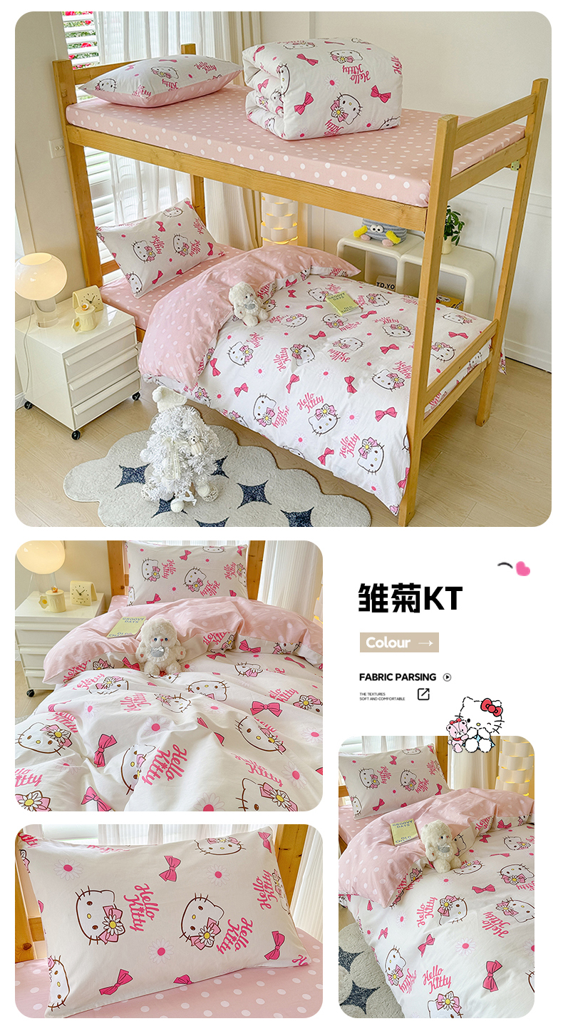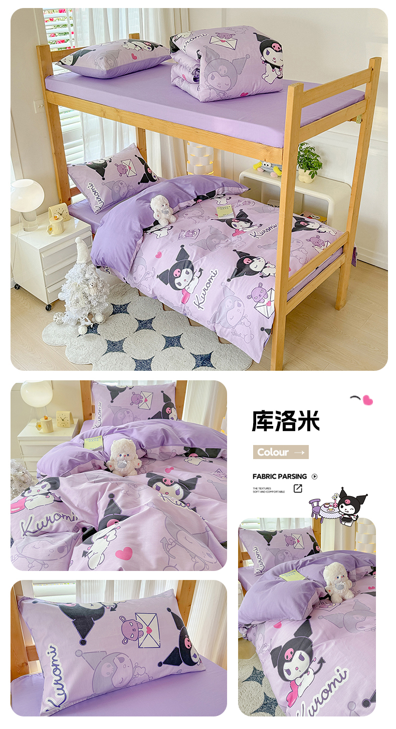 商品名称:(总)玉元坊 2026新款三丽鸥正版库洛米美乐蒂凯蒂猫全棉纯棉0.9m学生宿舍床三件套基础款