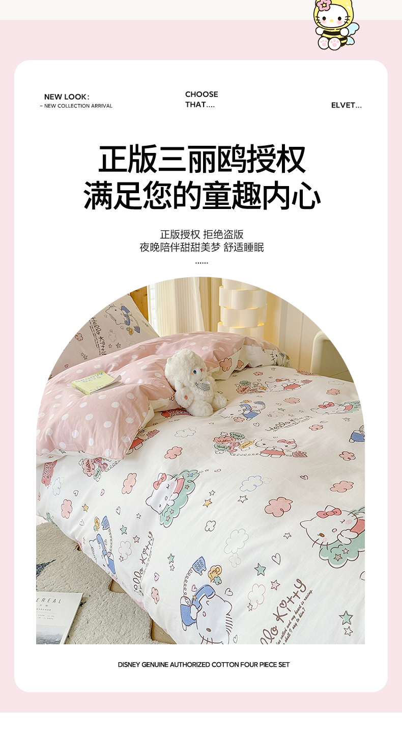 (总)玉元坊 2026新款三丽鸥正版授权凯蒂KT猫儿童卡通全棉纯棉床单床笠床裙花边被套三四件套,babyKT-白花边款,KT和熊粉-白花边款,雏菊kt 花边款,告白KT猫-白花边款,公主kt 花边款,乖巧KT-白花边款,凯蒂小熊 花边款,美美凯蒂 花边款,甜心kt 花边款