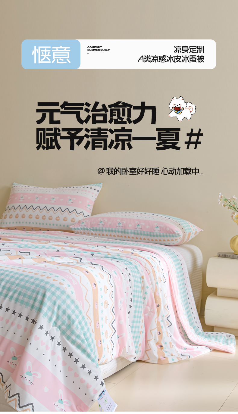 商品名称:一加一 2026新款A类凉感冰皮印花冰蚕被夏被夏凉被空调被 星兔时光