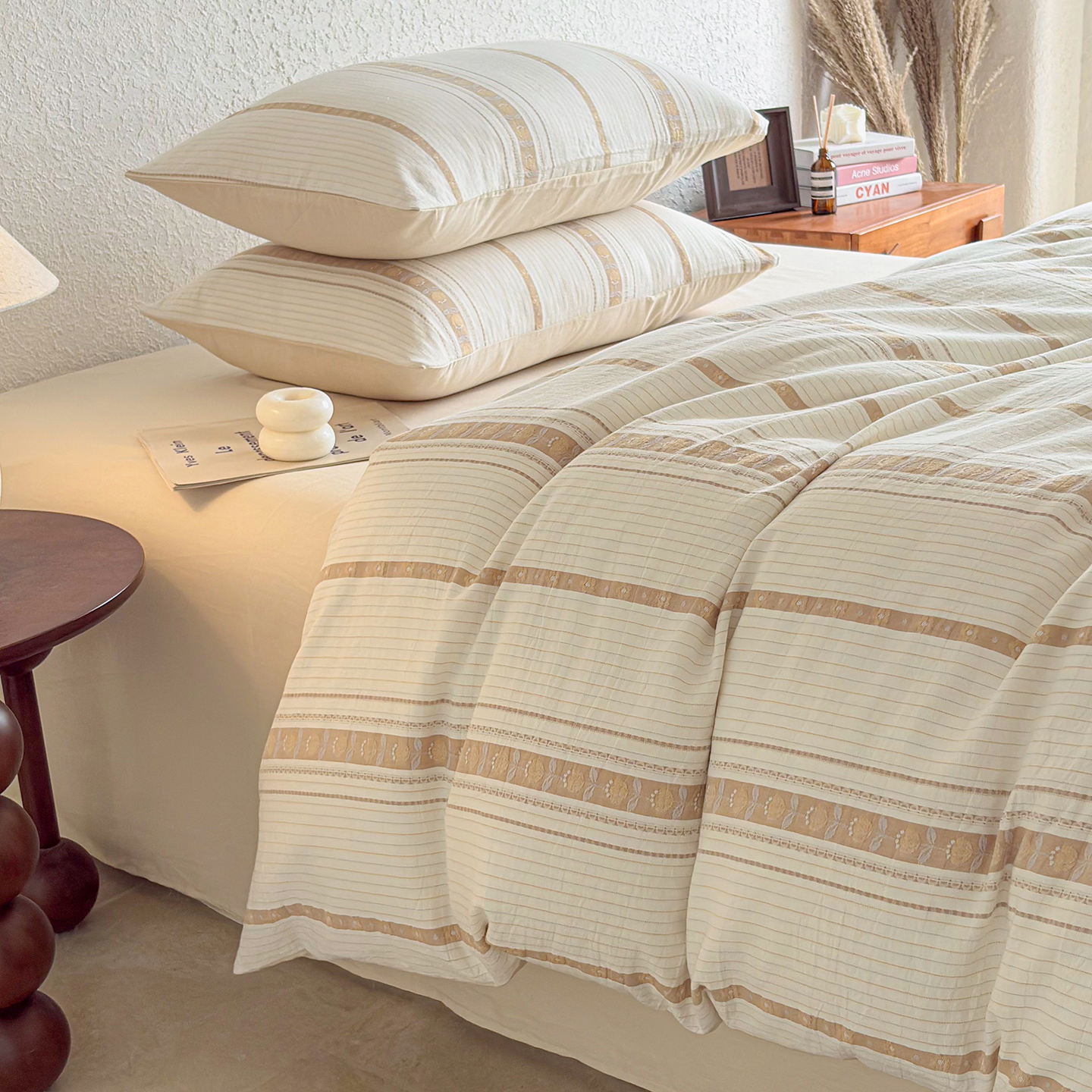 • 91家纺网 家纺一手货源 找家纺 (总)贝尔 2026新款全棉色织提花双层纱单被套,常青,春日来信,岛屿灰,法颂,花漫