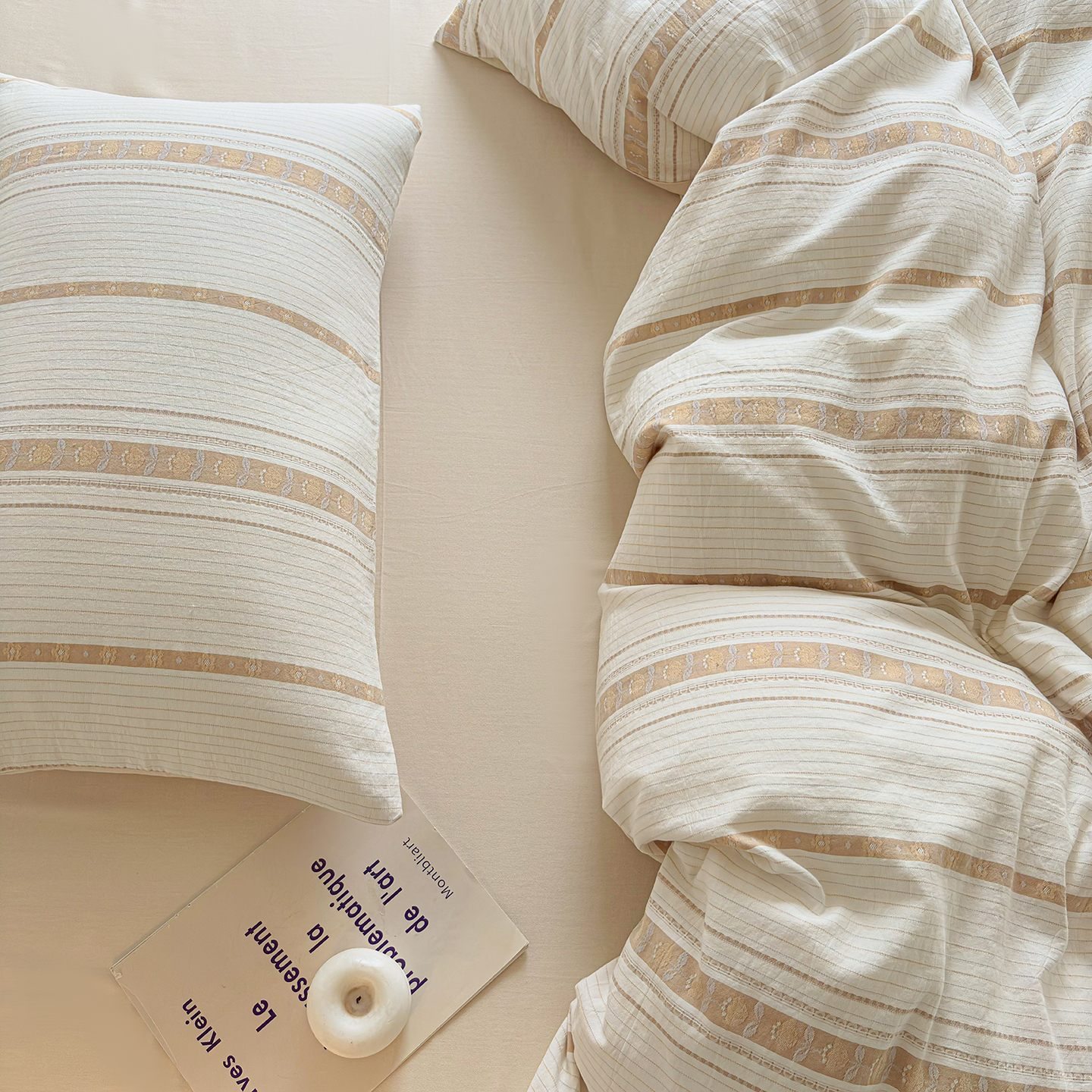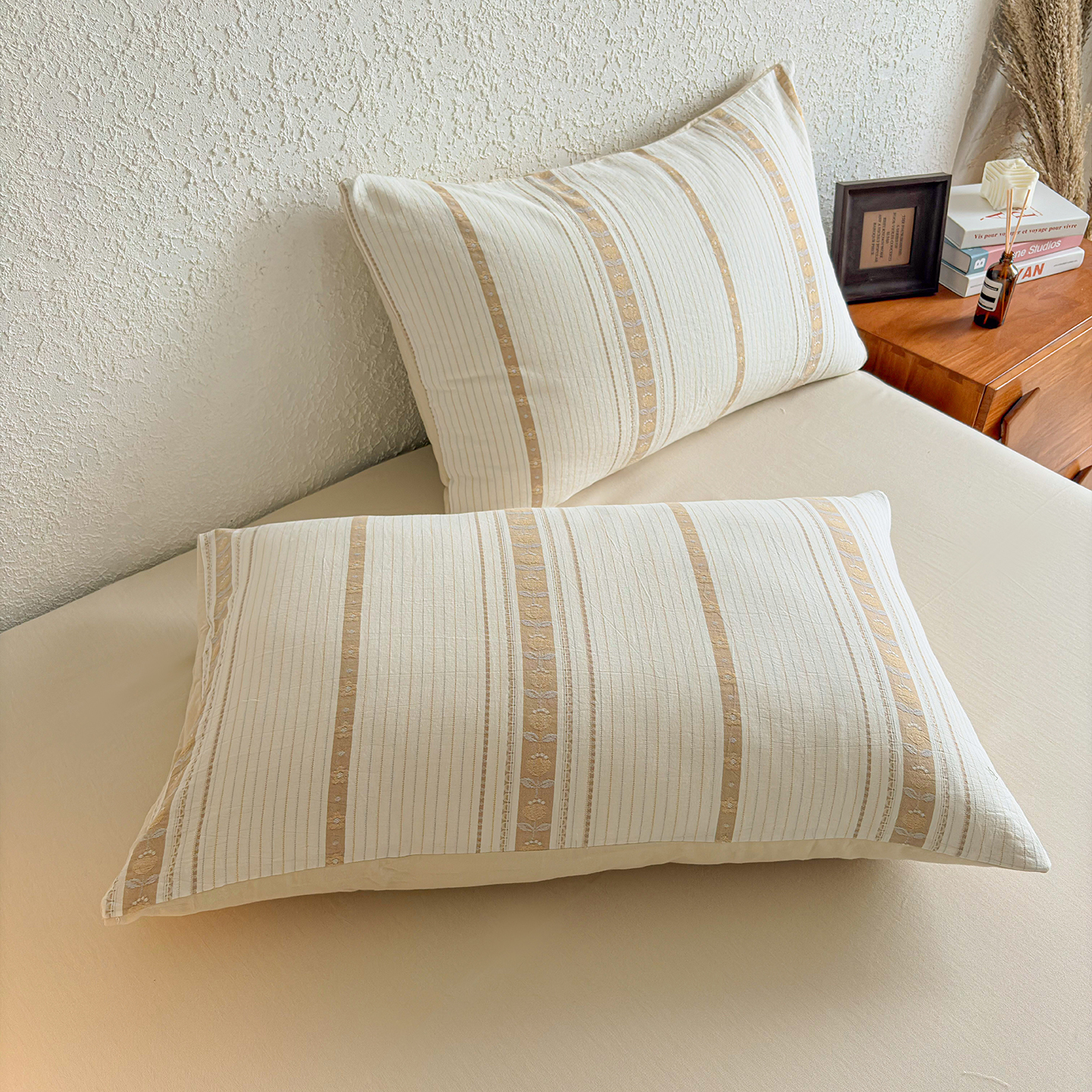 贝尔 2026新款全棉色织提花双层纱单枕套 法颂