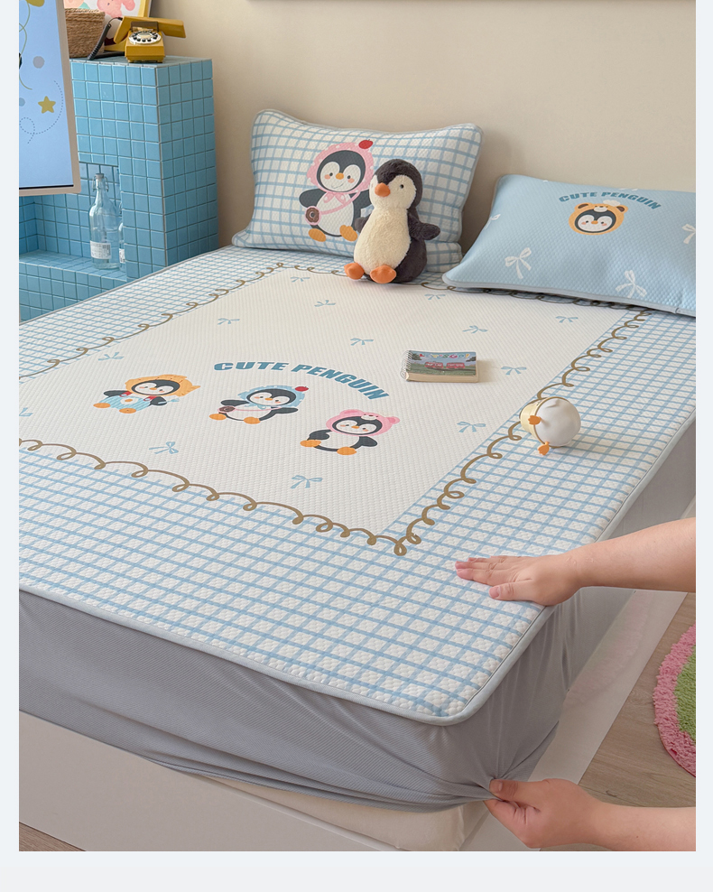 • 91家纺网 家纺一手货源 找家纺 (总)Sweet dreams甜梦 2026新款A类数码印花凉感豆豆床笠款凉席--大版,三只企鹅,爱心小马,狗狗的早餐,蝴蝶结小熊,花花蝴蝶结,美梦兔兔,苹果熊猫,三只小熊,条纹狗狗,紫底小兔