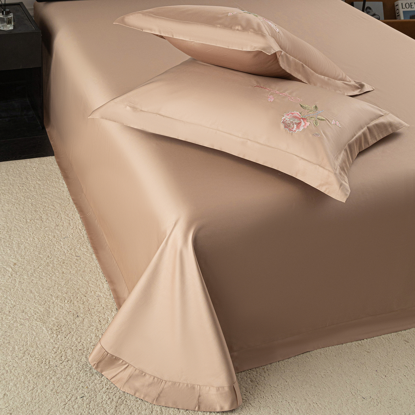 莉迪娅 2026新款50s双股长绒棉纯色简约绣花床单三件套--玫瑰恋人系列 粉豆沙