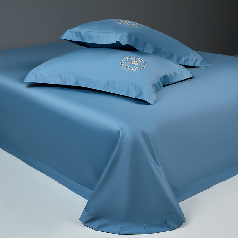 莉迪娅 2026新款50s双股长绒棉纯色简约绣花床单三件套--小蜜蜂系列 海藻蓝