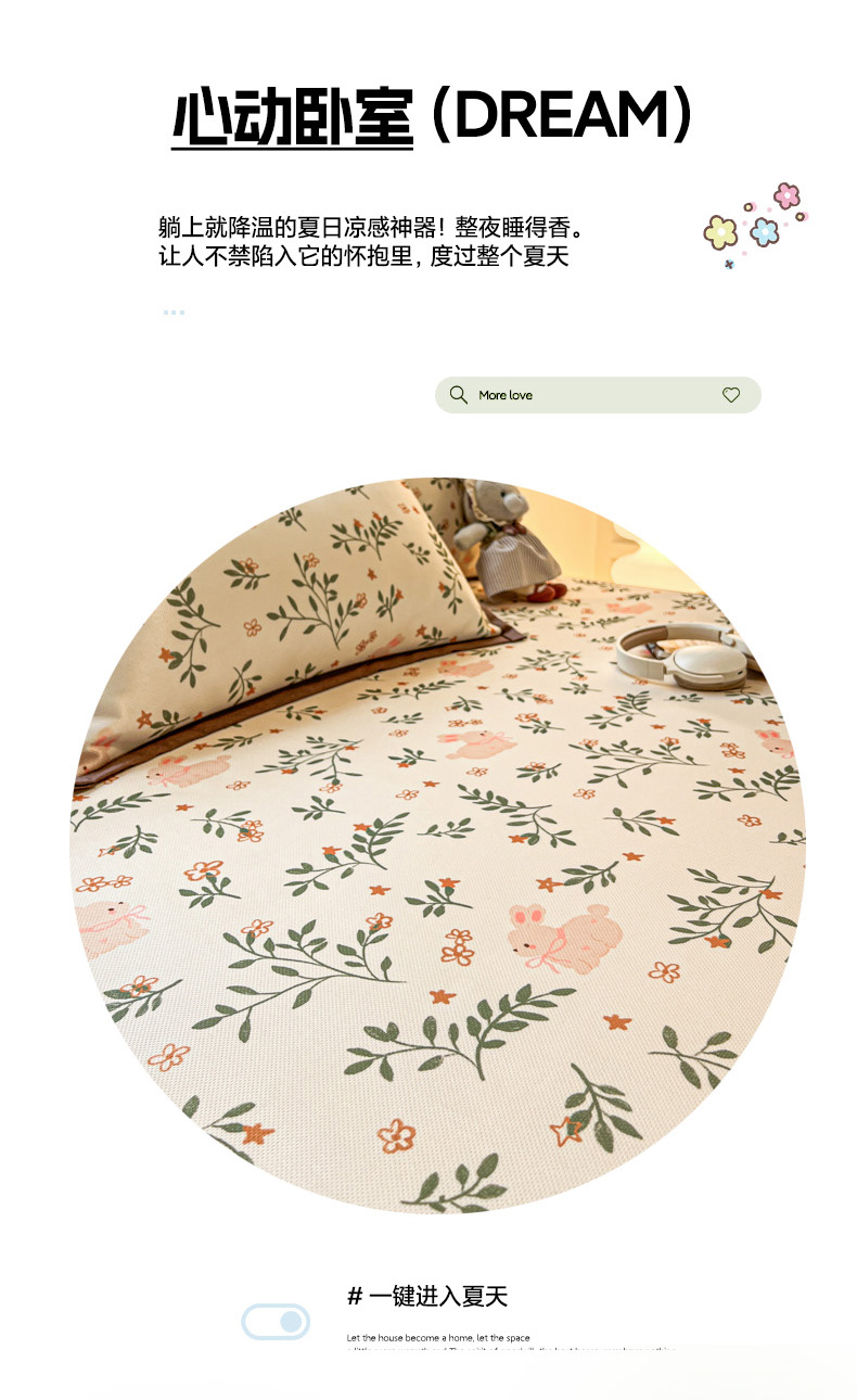 (总)女子家纺 2026新款大斜纹复合冰丝凉席-床席款,爱心气泡粉,萌熊印象,奶油草莓,拈花湾兰,七彩龙,奇妙幻想,水木年华,午后茶花,悠悠小元,尤克里里粉