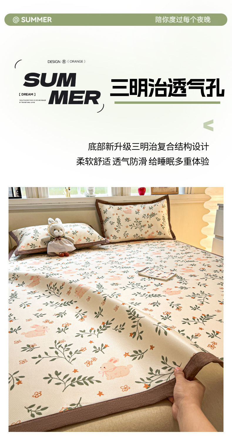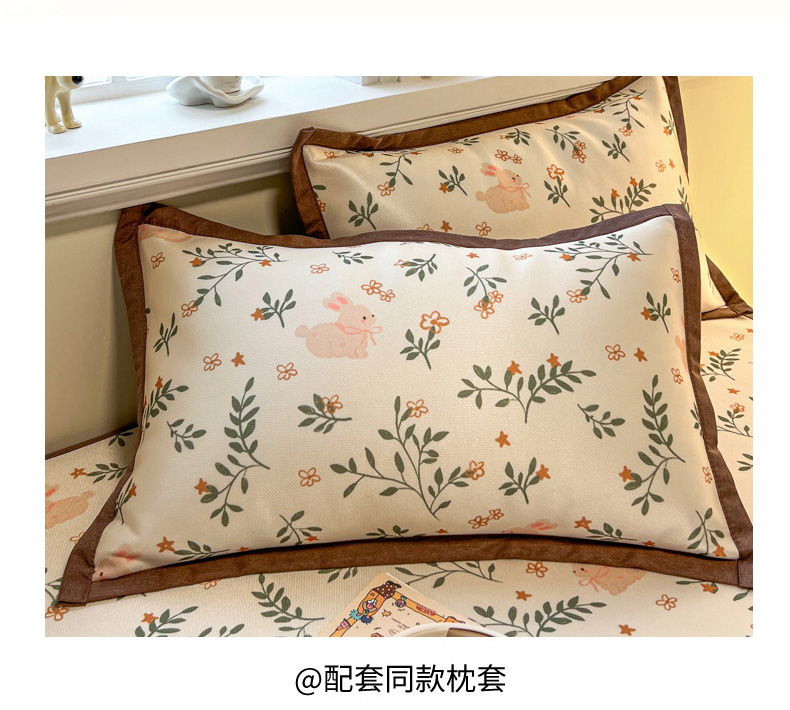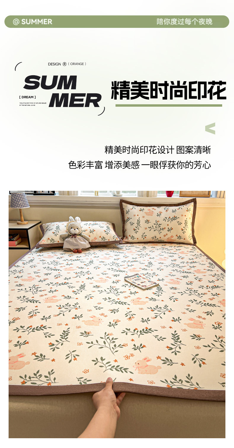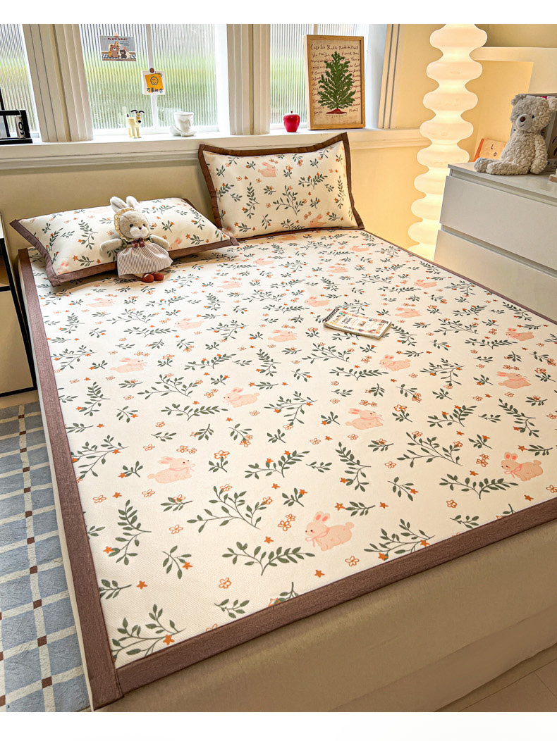 商品名称:女子家纺 2026新款费尔岛风冰丝凉席 叶叶兔眠