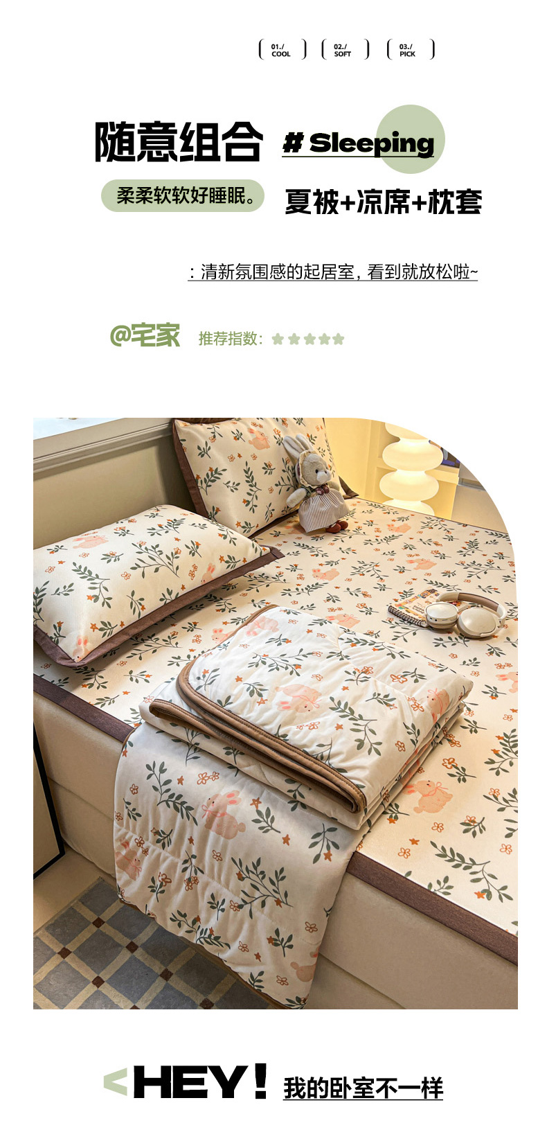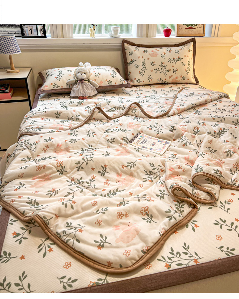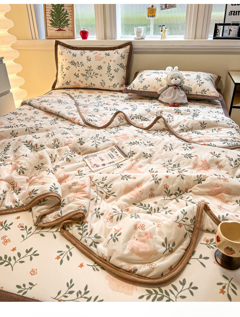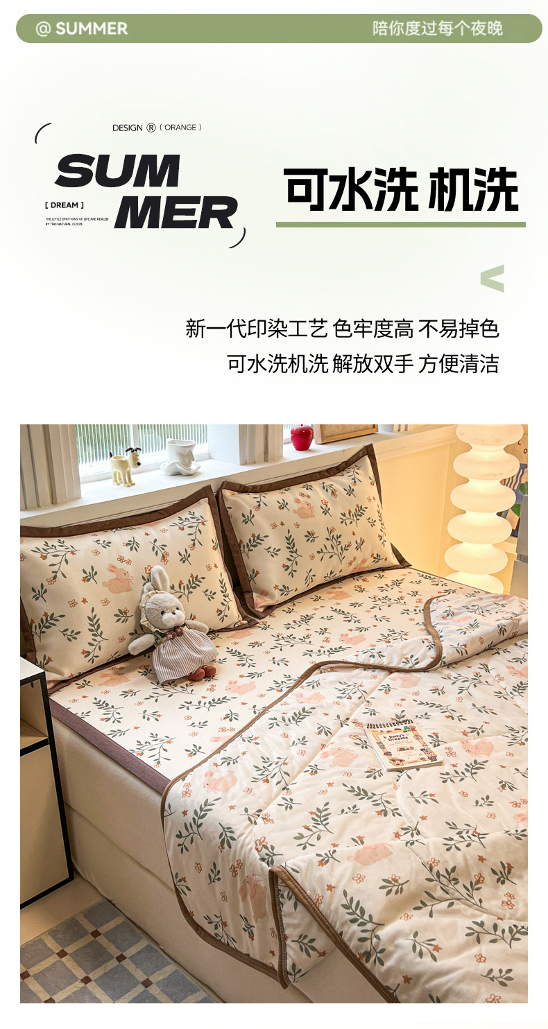 商品名称:女子家纺 2026新款费尔岛风冰丝凉席 叶叶兔眠