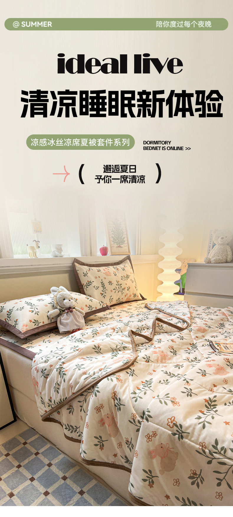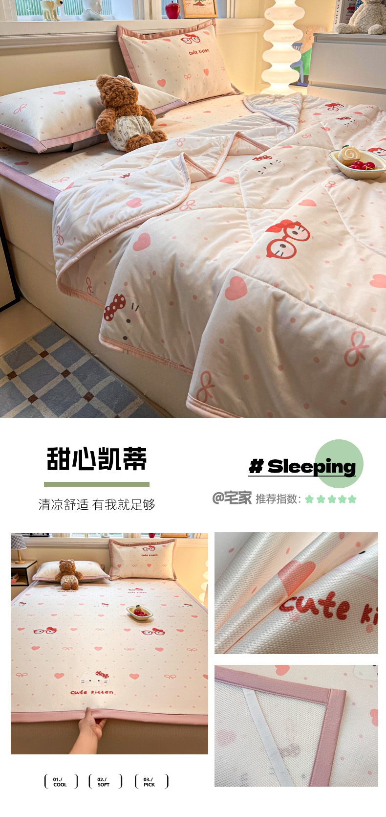 (总)女子家纺 2026新款费尔岛风冰丝凉席夏被套件系列,费尔岛马,粉格西高,红调猫咪,蓝兔奶冻,奶咖喵语,甜心凯蒂,夏日海星,叶叶兔眠
