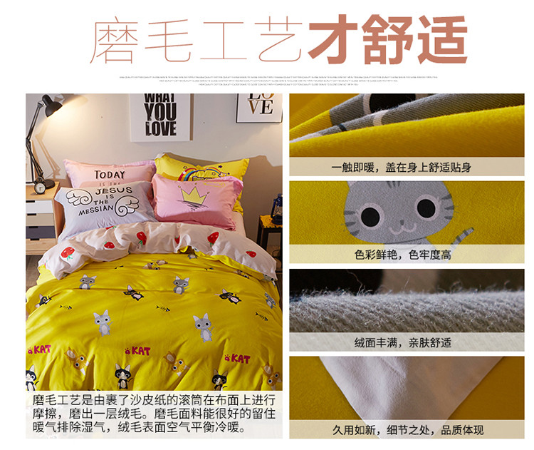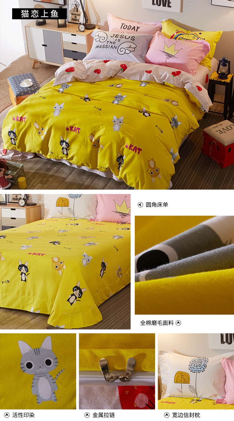 商品名称:芃成家纺 活性磨毛混搭四件套猫恋上鱼