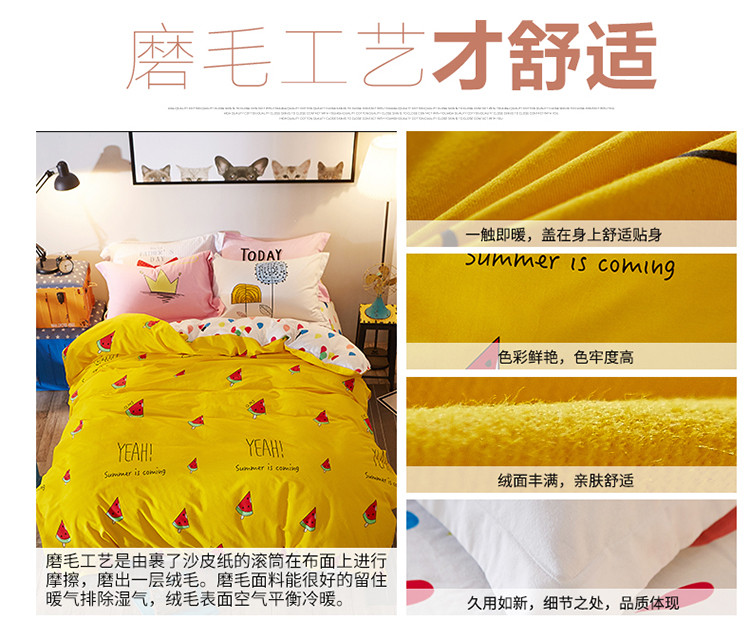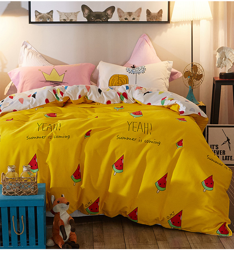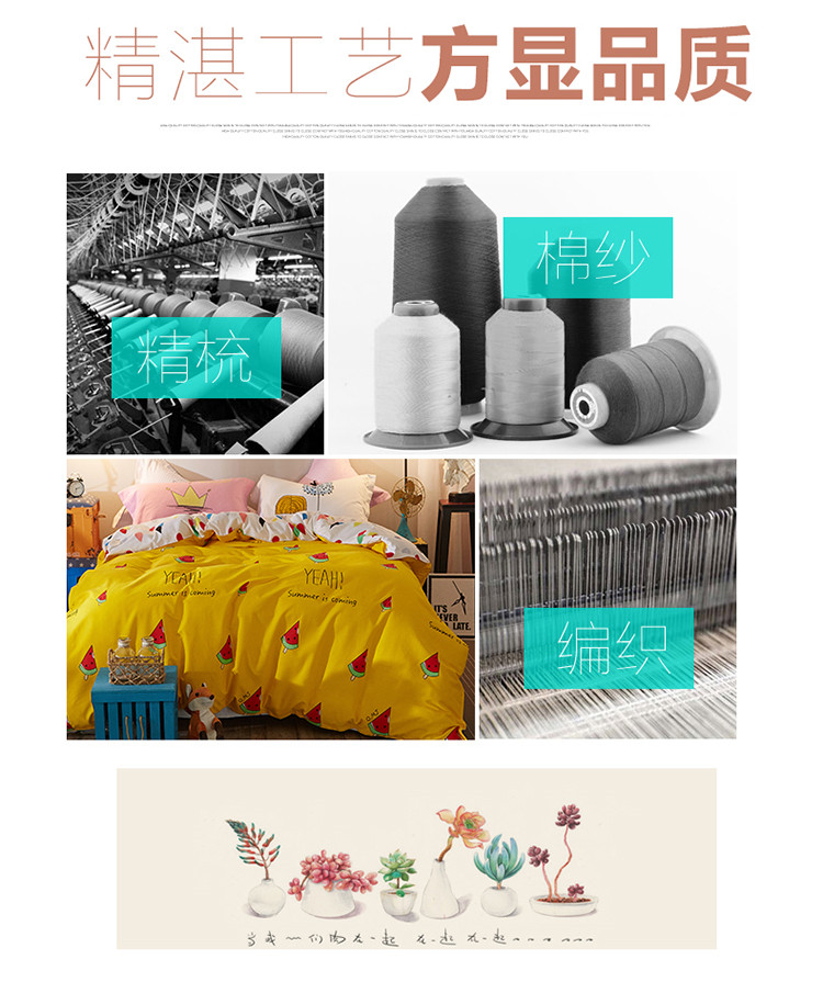 芃成家纺 活性磨毛混搭四件套我爱西瓜