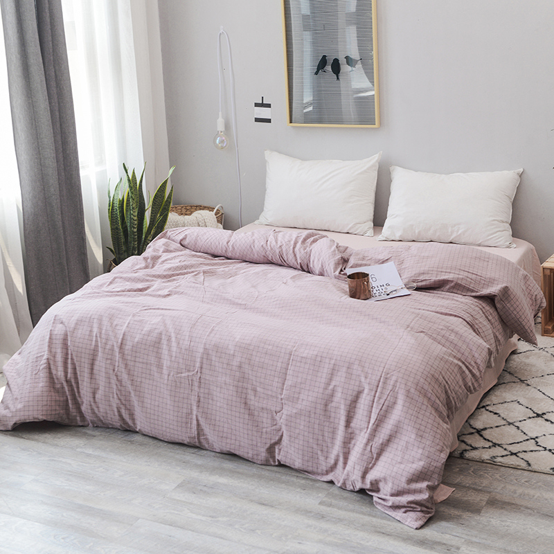 柠萌家居 全棉色织水洗棉单被套 豆沙小格