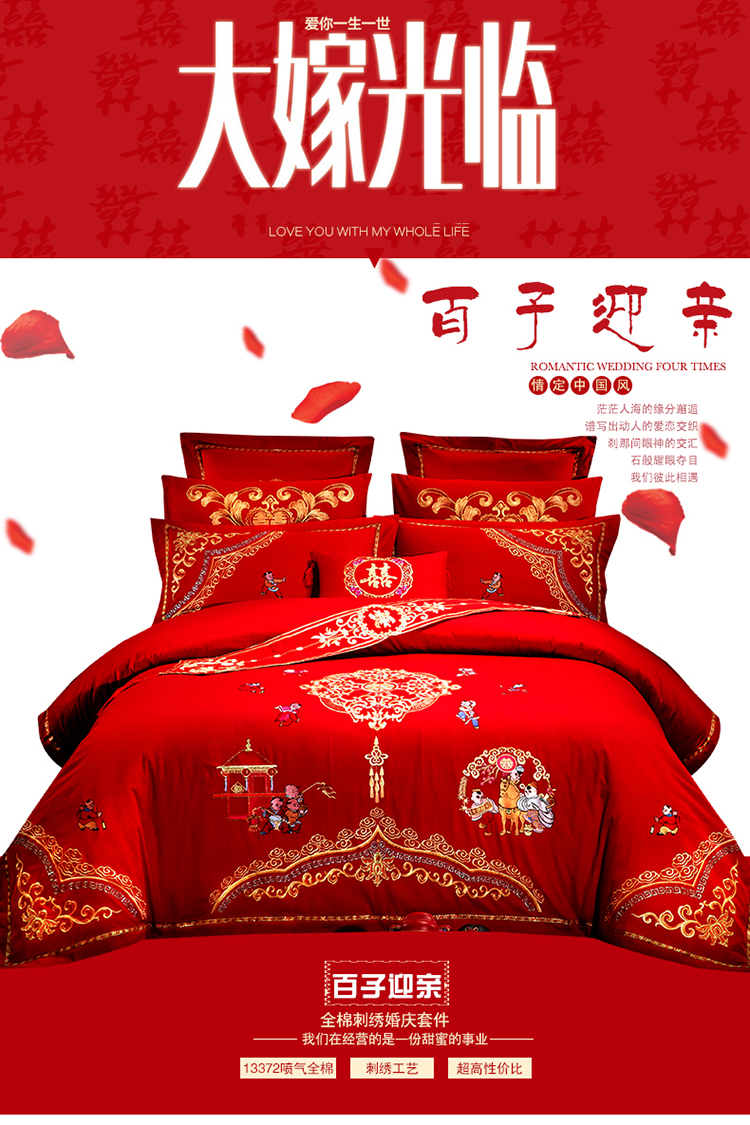 (总)慕她家纺 2025慕她婚庆四件套大红色全棉纯棉刺绣结婚床上用品-系列一,百子登科,百子贺喜,百子江山,恩爱情深,繁花似锦,好运吉祥,吉祥龙凤,眷恋龙凤,恋曲牡丹,美丽红妆,名门龙凤,如愿,诗韵牡丹,天生一对,执手龙凤,至尊龙凤,子孙满堂,走进幸福 红,走进幸福 金,缔结良缘 红,缔结良缘 金,凤冠霞帔,福喜龙凤,花开志喜,欢喜龙凤,佳偶天成,龙凤呈祥,龙凤佳缘,龙凤送子,龙凤添喜,龙凤团圆,龙凤祥和,龙翔凤舞,龙啸凤吟,双喜临门,天赐良缘,甜蜜龙凤,喜嫁,喜结连理,喜韵江山,鸳鸯贺喜,早生贵子,挚爱龙凤