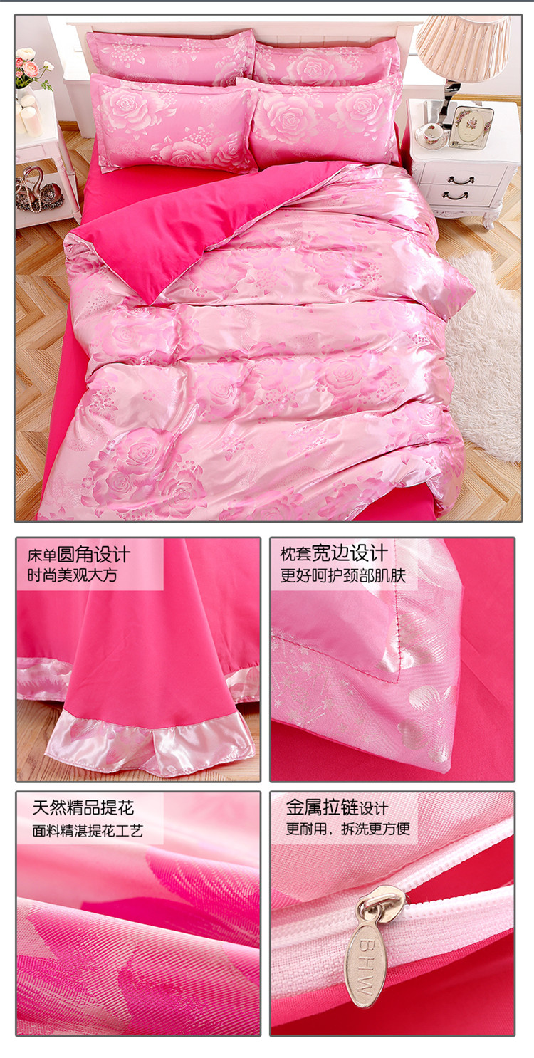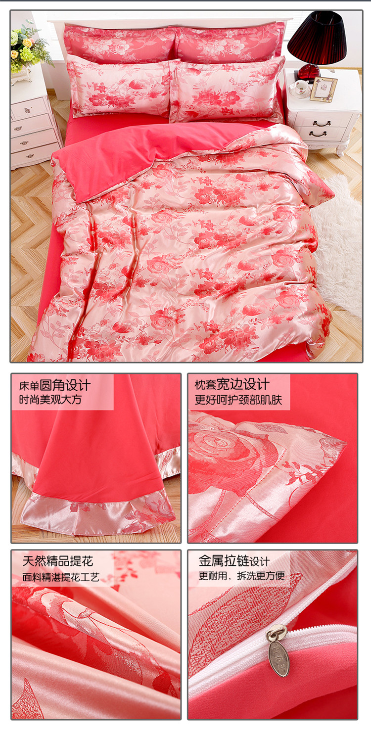 (总)百花王 贡缎提花四件套,爱意玫瑰,繁华似景,富贵大红,富贵牡丹,富贵人生,牡丹花开,烟雨怡花,伊莎贝尔