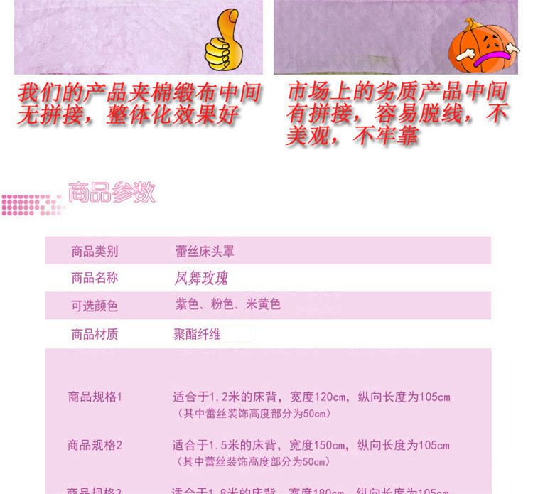商品名称:情恒家纺 2019蕾丝床头罩大靠背靠垫凤舞玫瑰系列 粉色