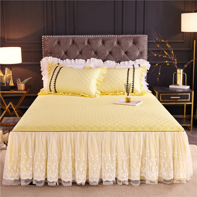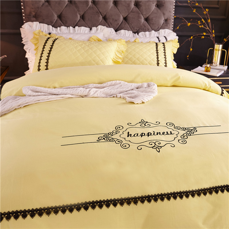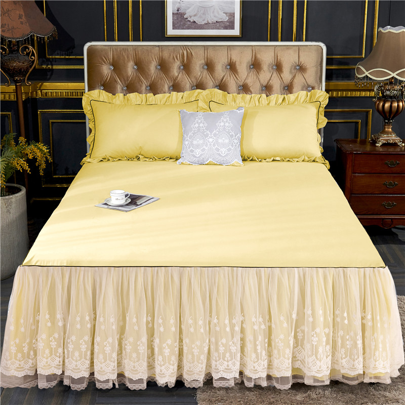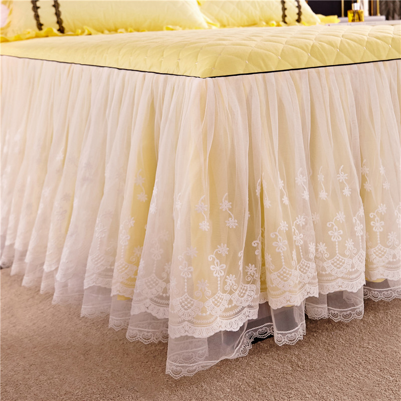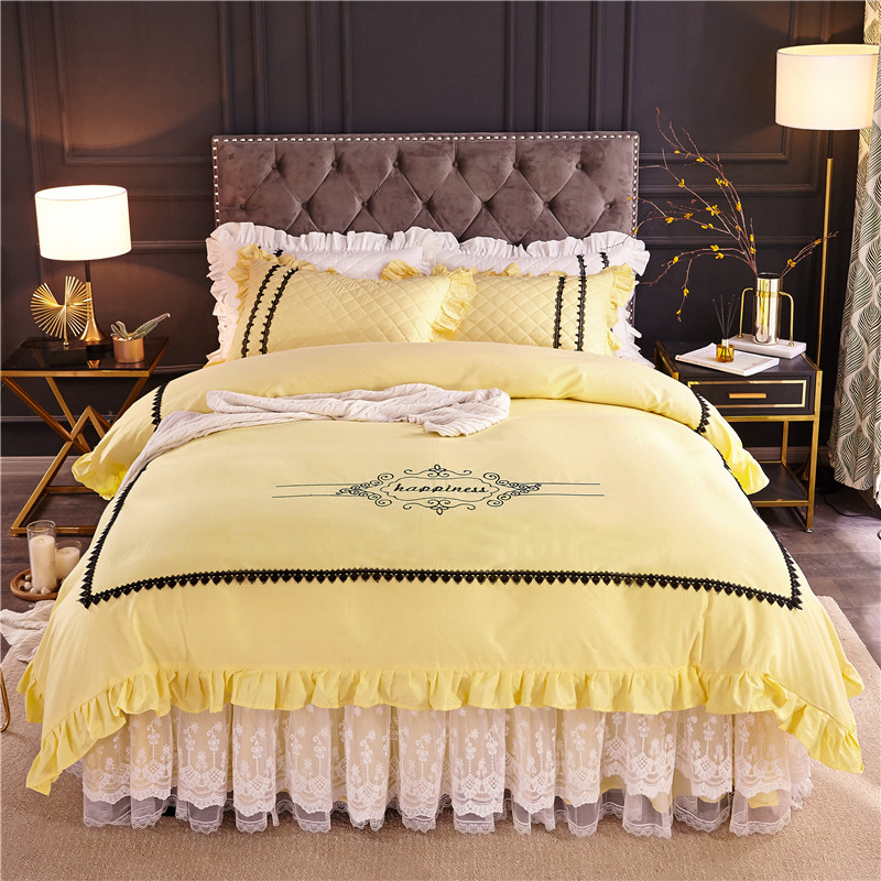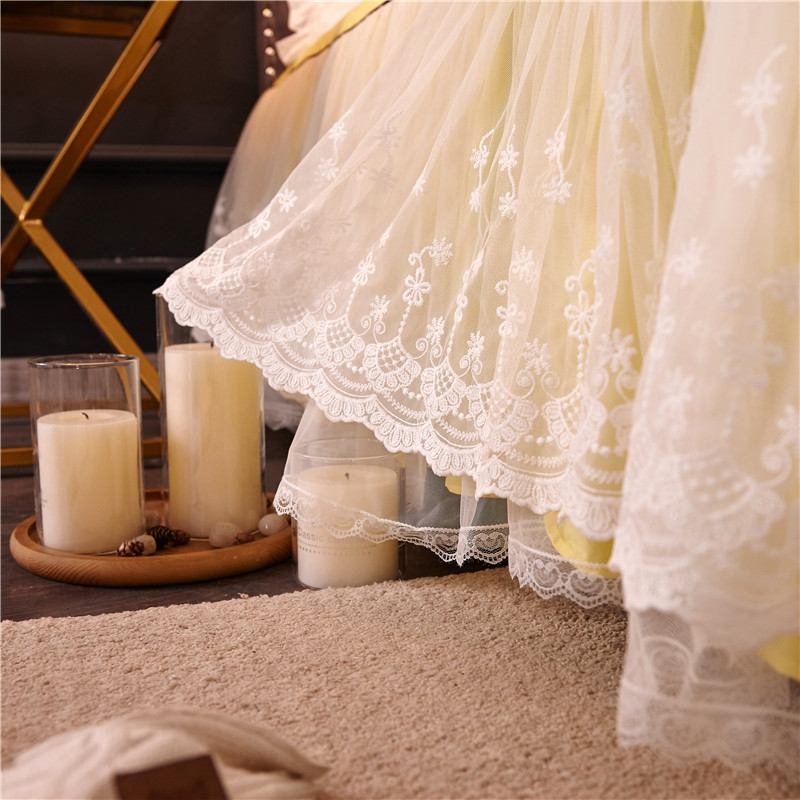 当前位置: 91家纺网 > 商品网购 > 床品套件 > 四件套 > 全棉普通四件套 > 2021菊上-全棉刺绣蕾丝床裙款四件套单层夹棉双款式柠檬黄