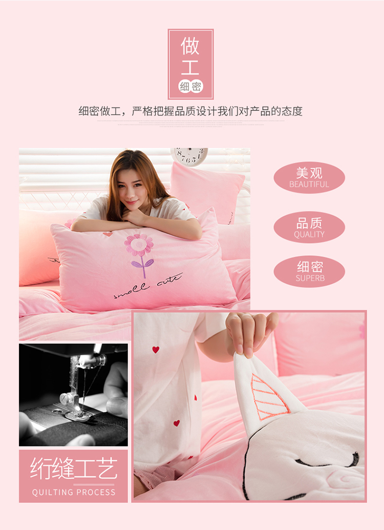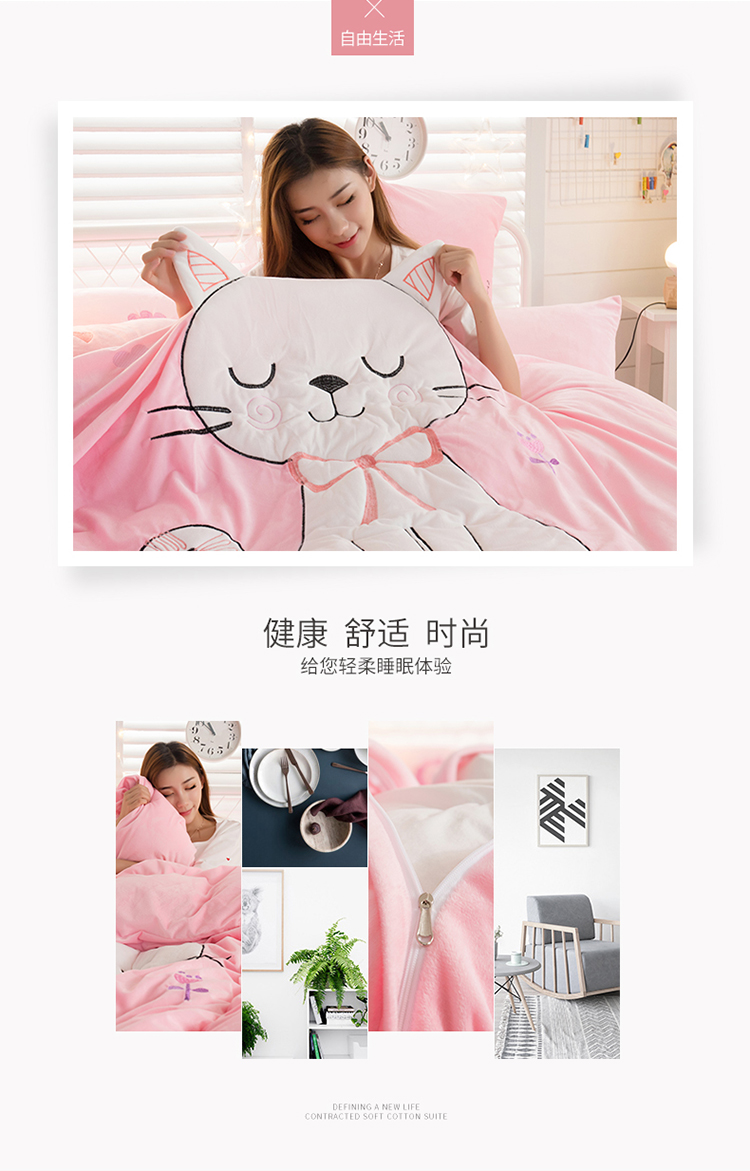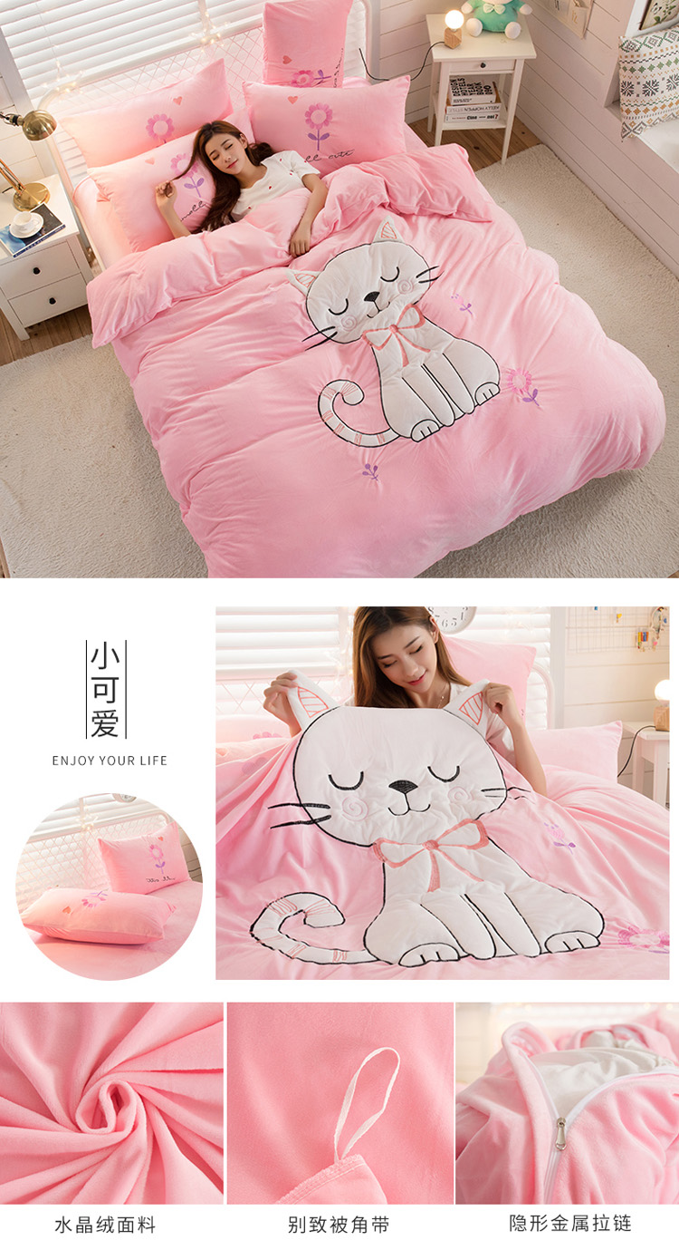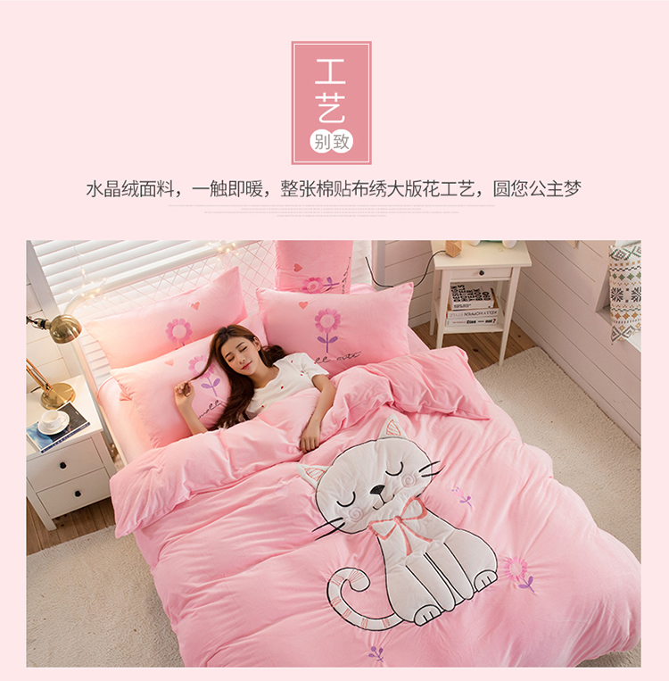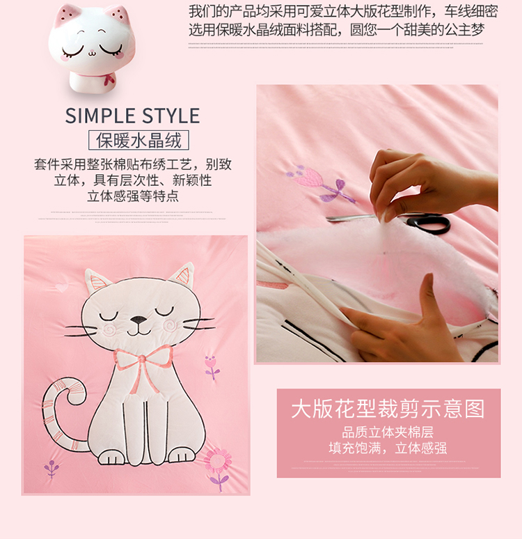 商品名称:青竹苑 2019保暖套件贴布绣花水晶绒四件套 小可爱
