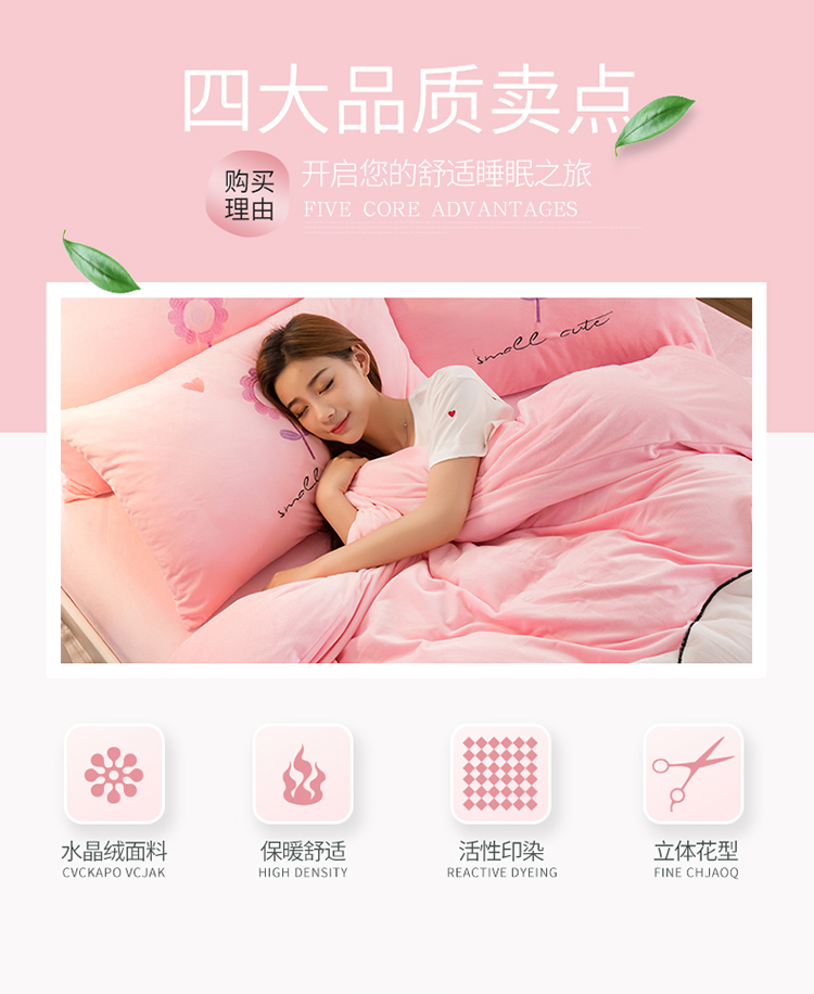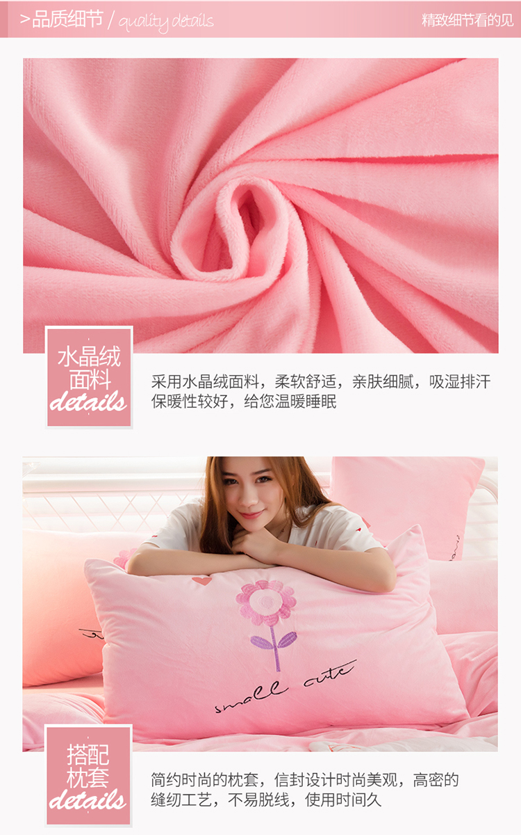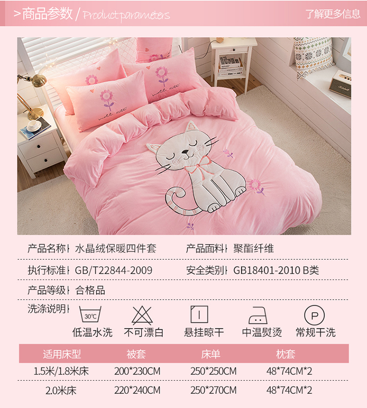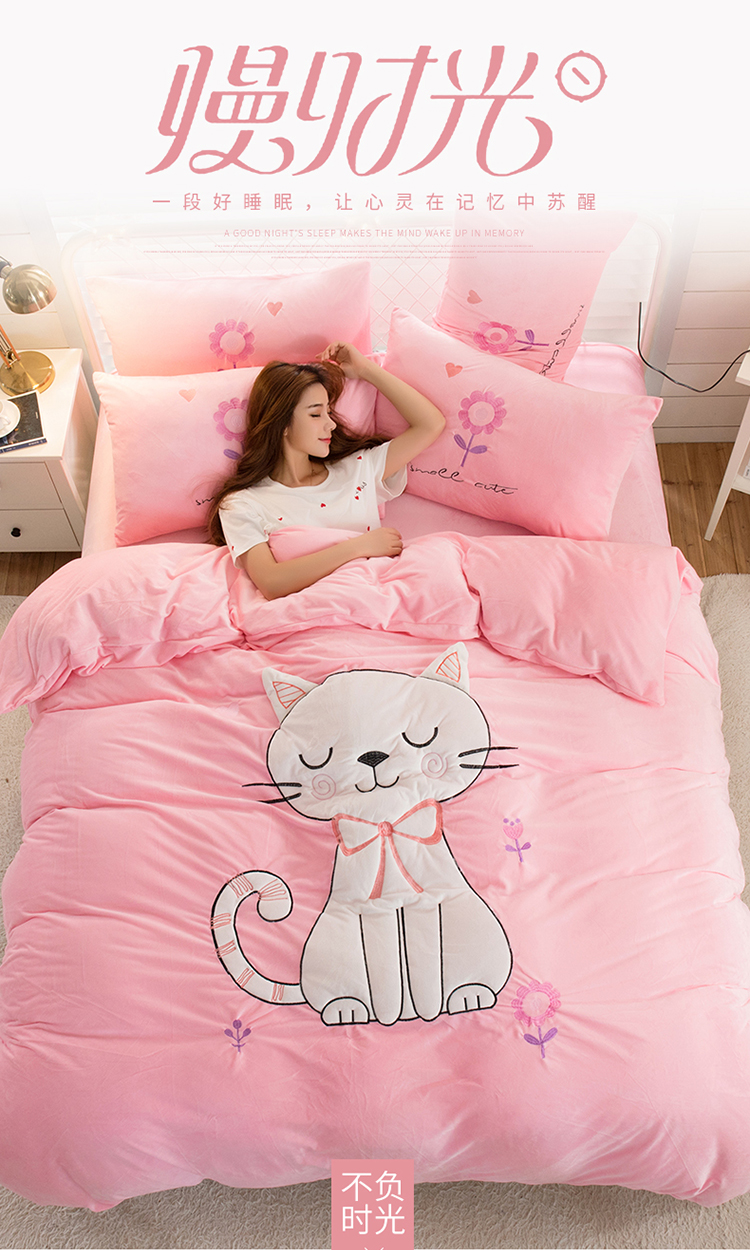 商品名称:青竹苑 2019保暖套件贴布绣花水晶绒四件套 小可爱