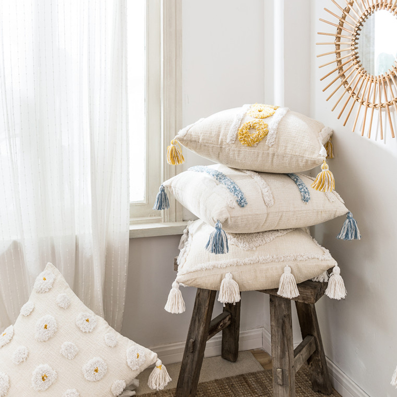 (总)918拾朵家居 2025新款热卖流苏抱枕,波浪纹(A款),波浪纹(B款),侧边流苏(黄色),侧边流苏(绿色)