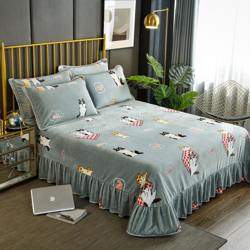雨洋家纺 2025新款加厚金貂绒床裙床盖 哈士奇