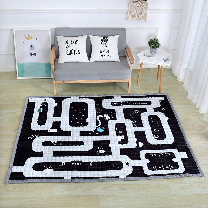 沁童家纺 北欧风长方形加厚地垫儿童爬爬垫黑白迷宫