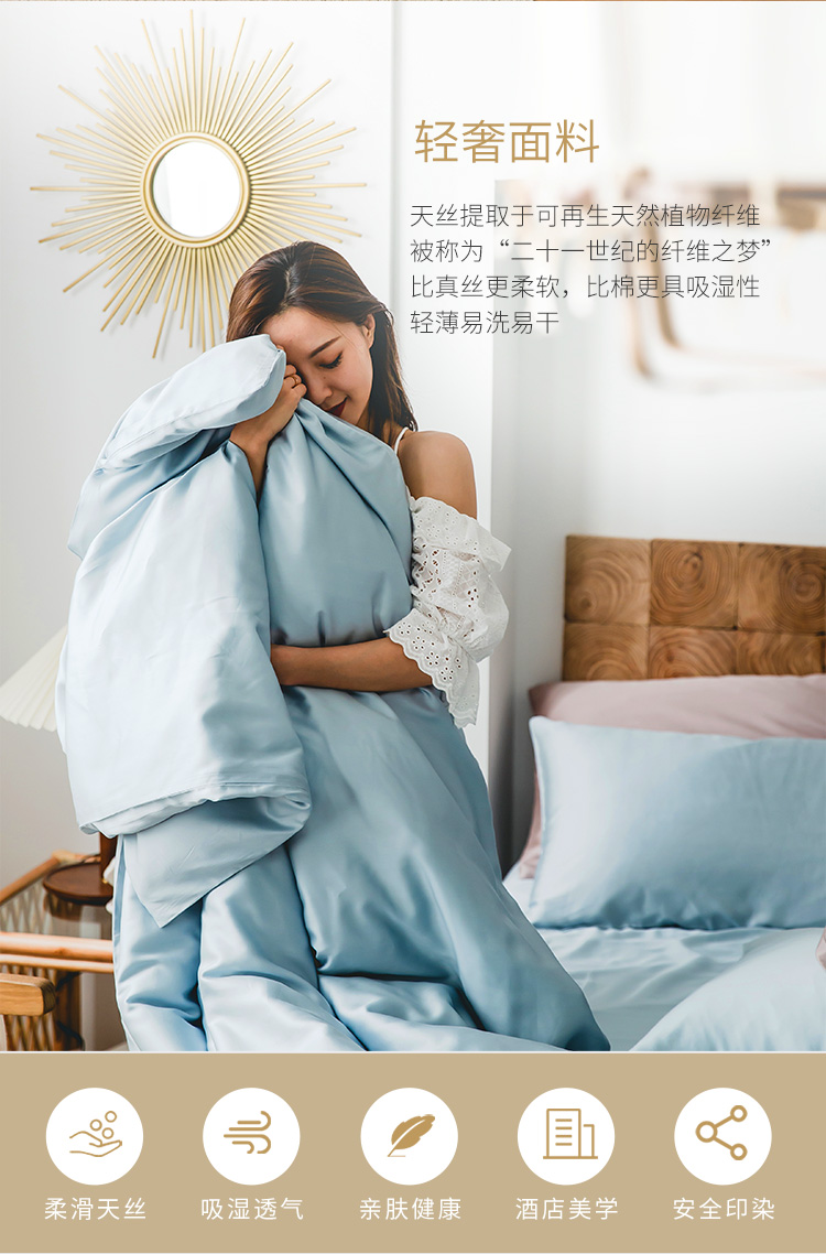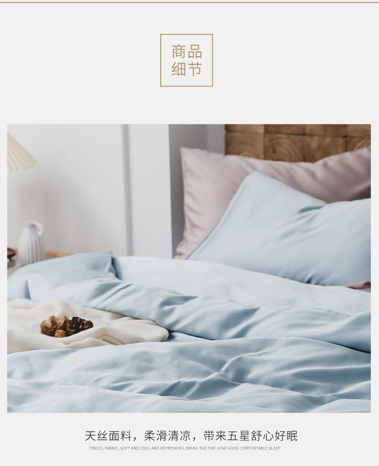 商品名称:2020春夏纯色天丝四件套 蓝色蜗牛