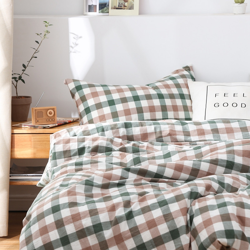 当前位置: 91家纺网 > 商品网购 > 床品套件 > 四件套 > 全棉普通四件套 > 久典家纺 2019色织水洗棉基础款系列汇总四件套床单款中格绿