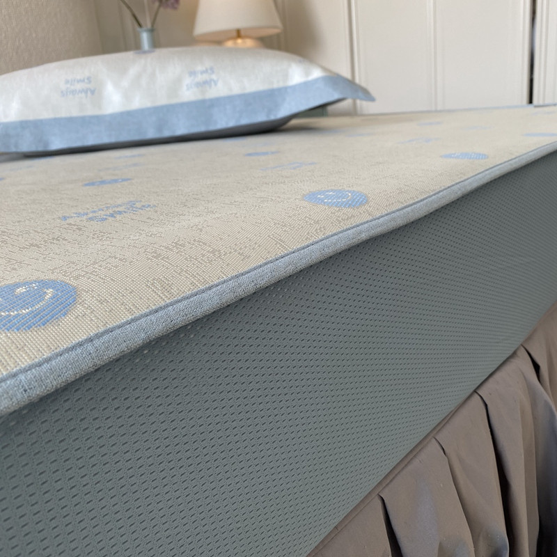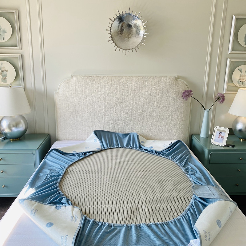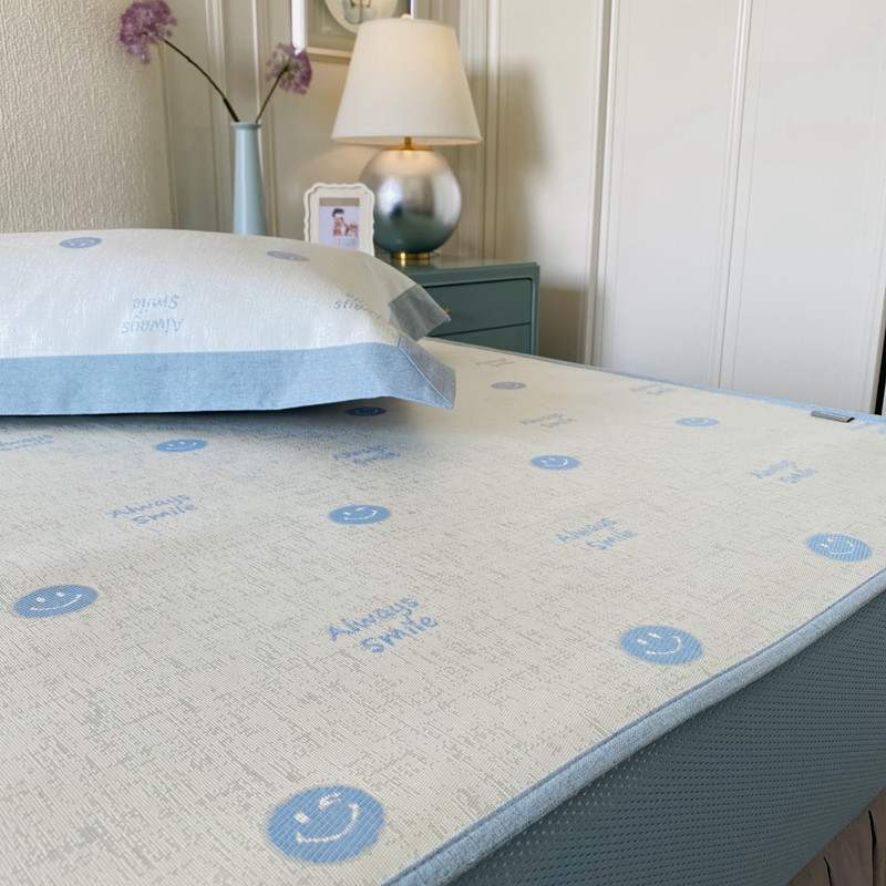 本希 2020新款可水洗冰丝凉席提花床笠系列实拍图 笑脸-蓝