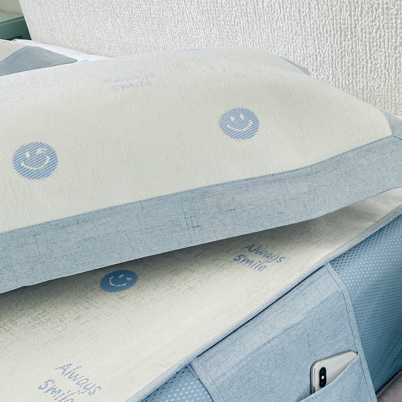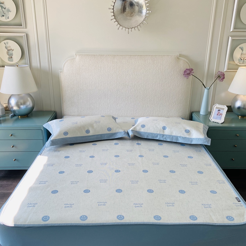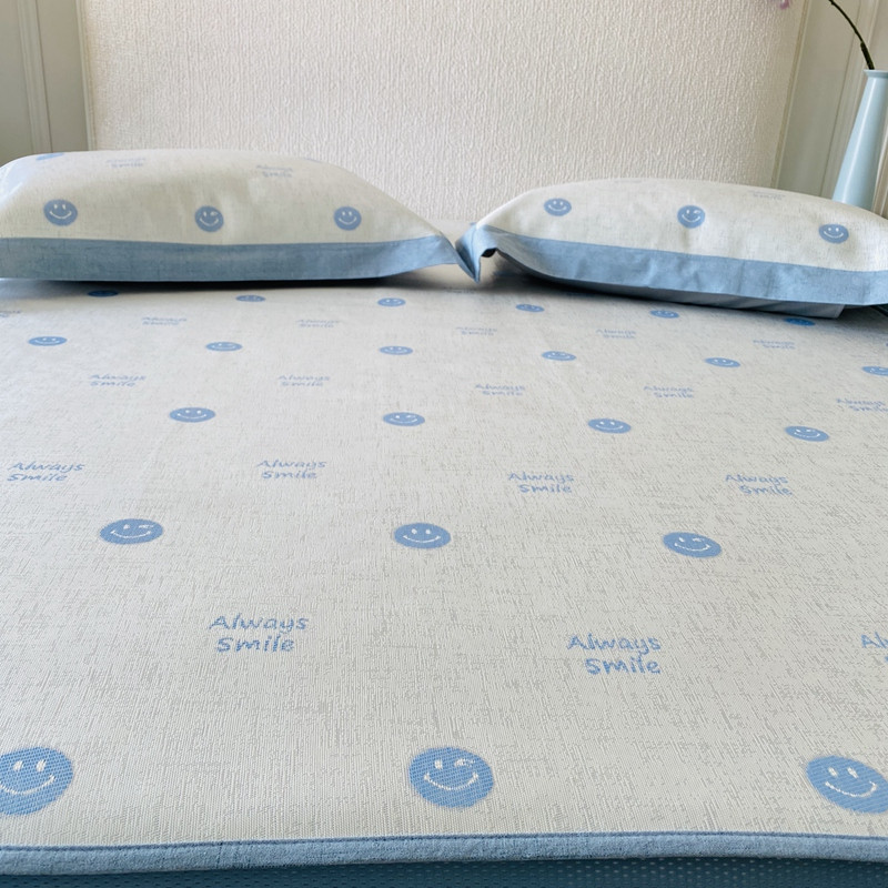 商品名称:本希 2020新款可水洗冰丝凉席提花床笠系列实拍图 笑脸-蓝
