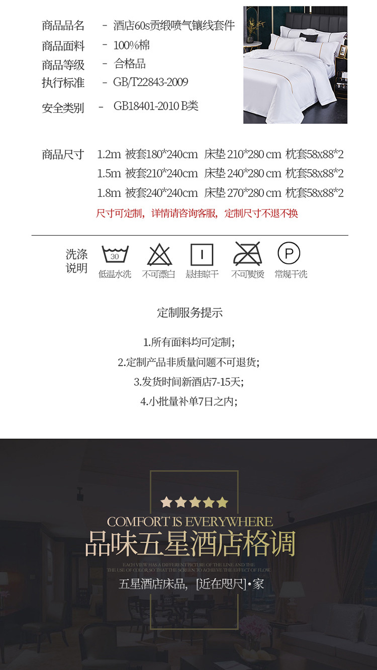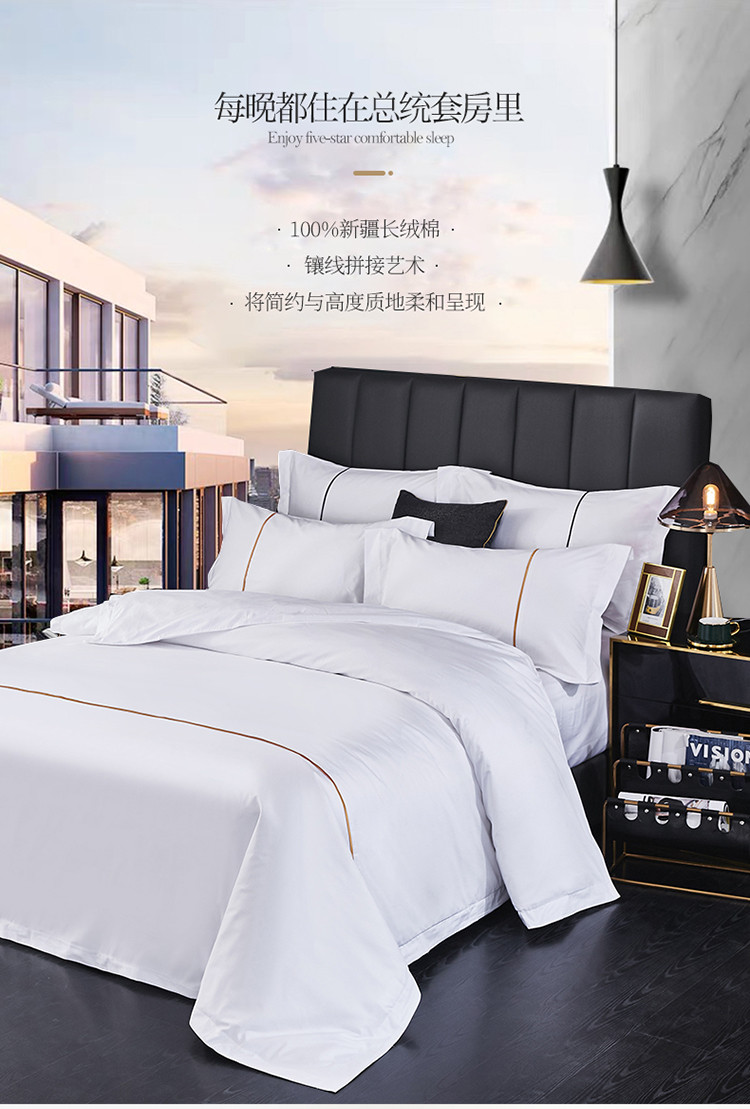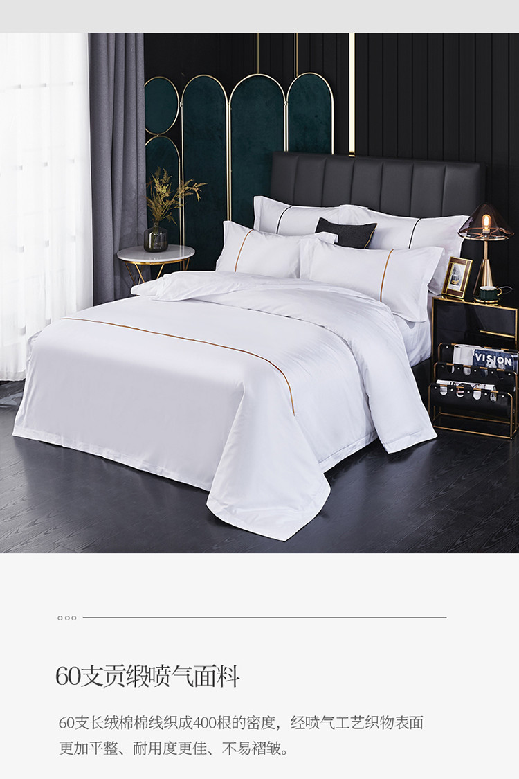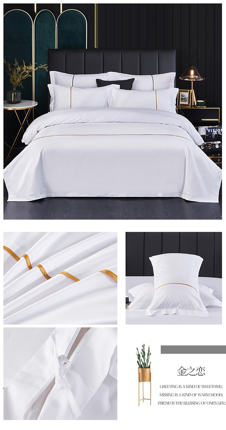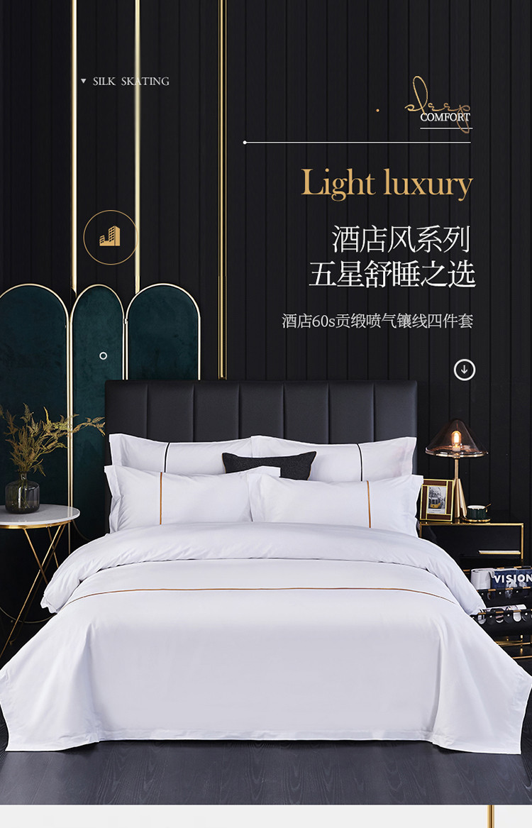 当前位置: 91家纺网 > 商品网购 > 床品套件 > 四件套 > 贡缎全棉四件套 > 罗菲尼酒店用品2025新款60s贡缎喷气镶线系列金之恋