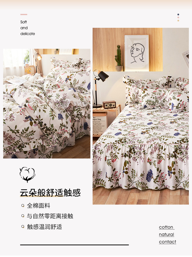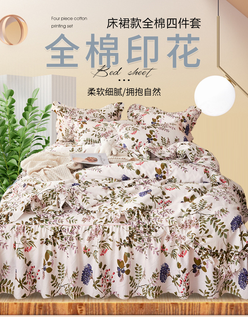 当前位置: 91家纺网 > 商品网购 > 床品套件 > 四件套 > 全棉普通四件套 > 十个点家纺 2020新款印花床裙四件套普罗旺斯