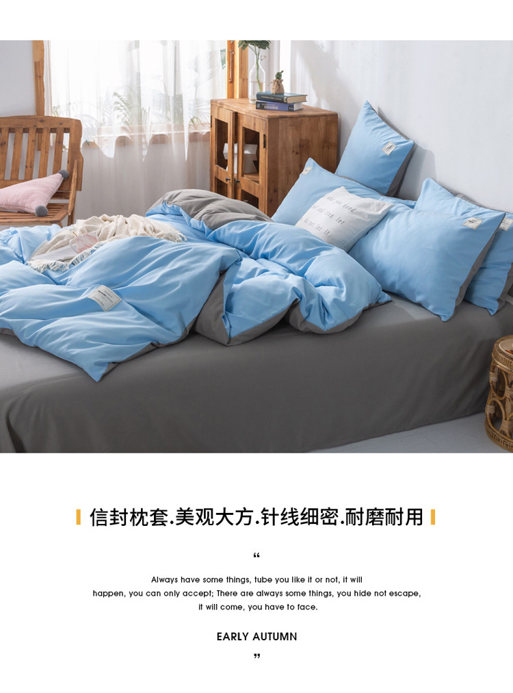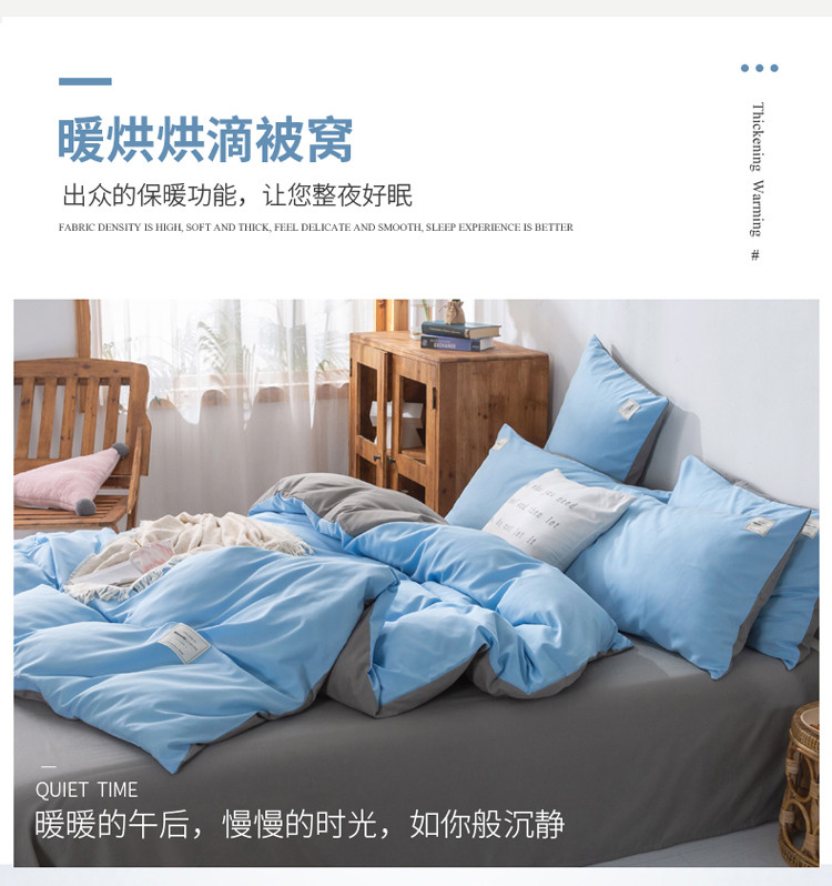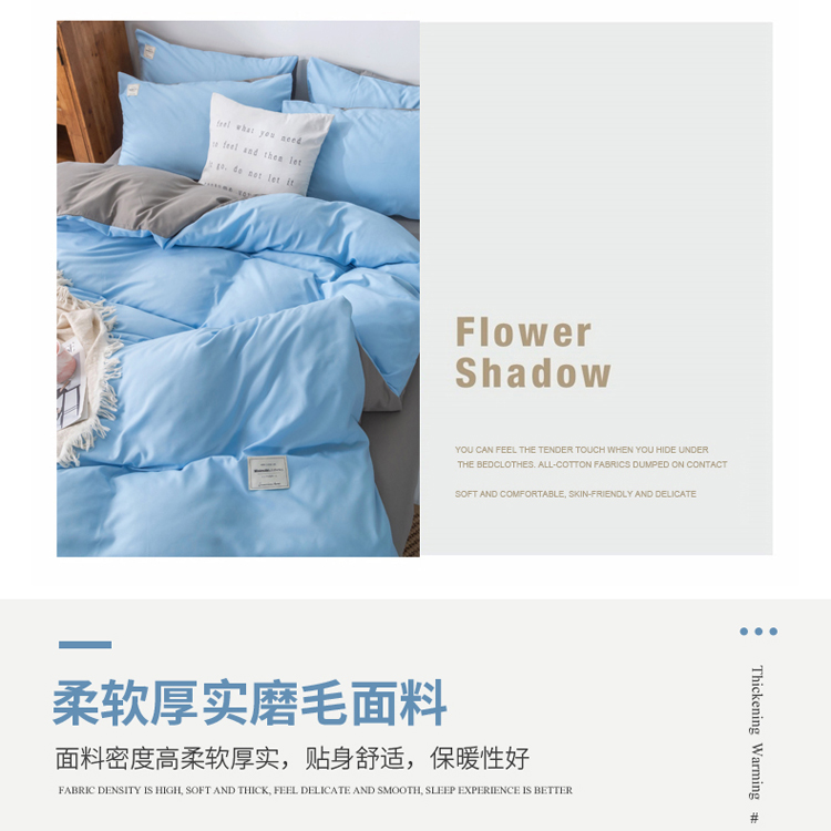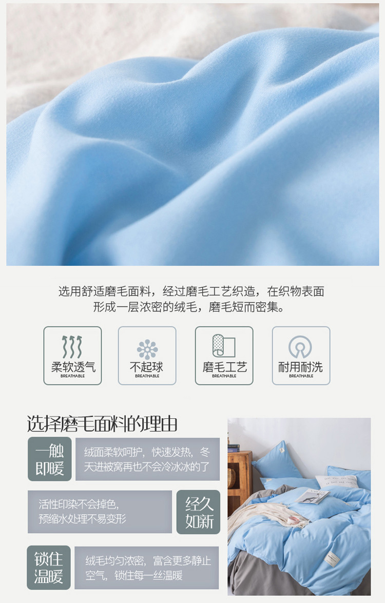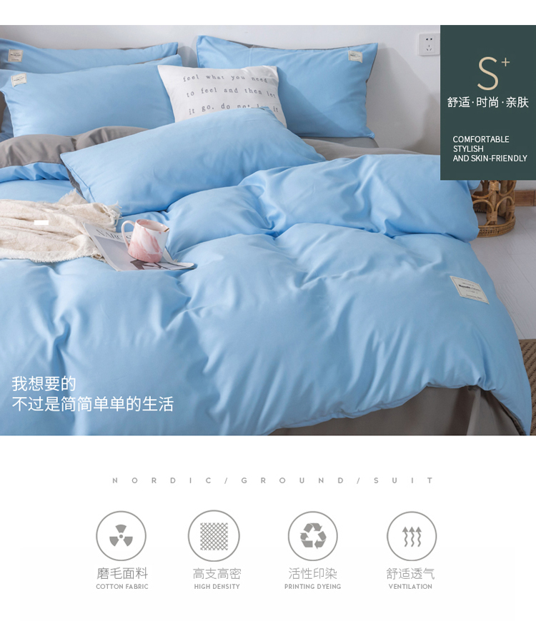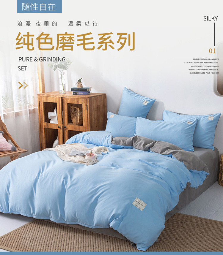 商品名称:米粒 2020新款纯色磨毛四件套 天蓝+灰