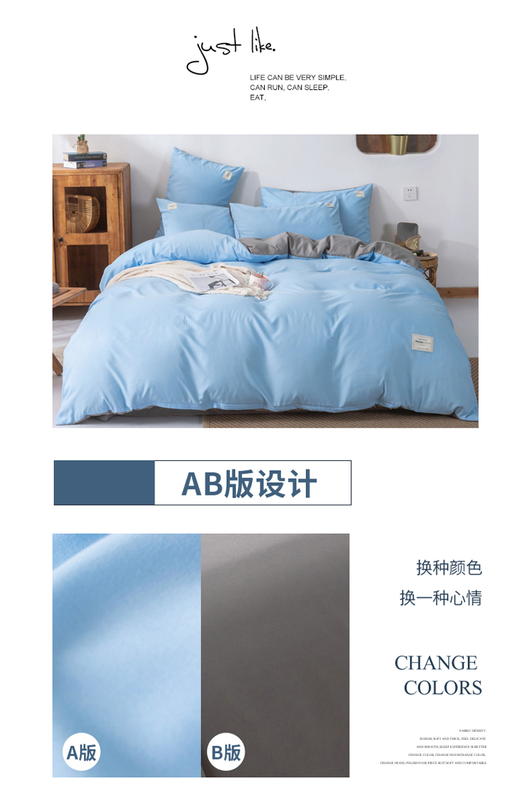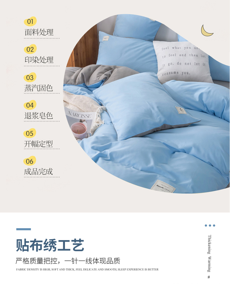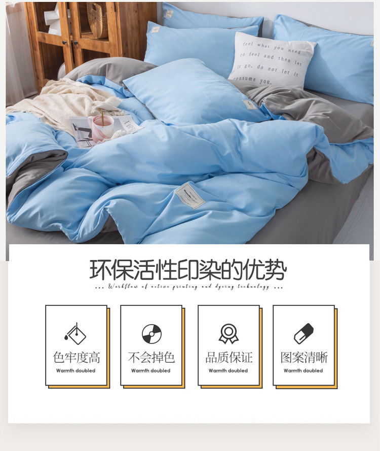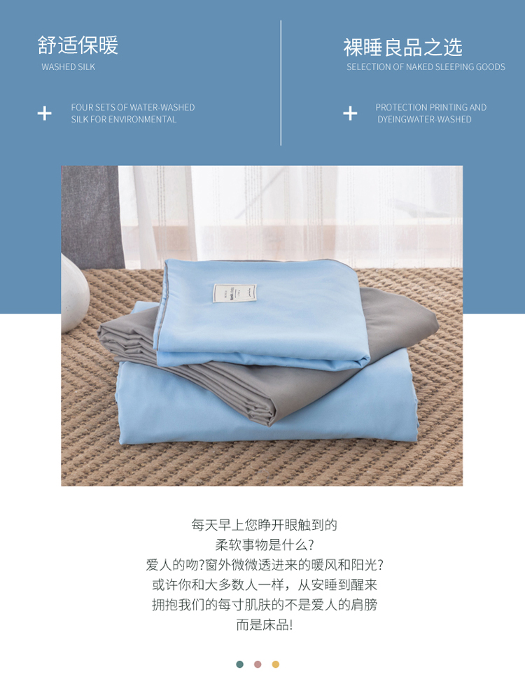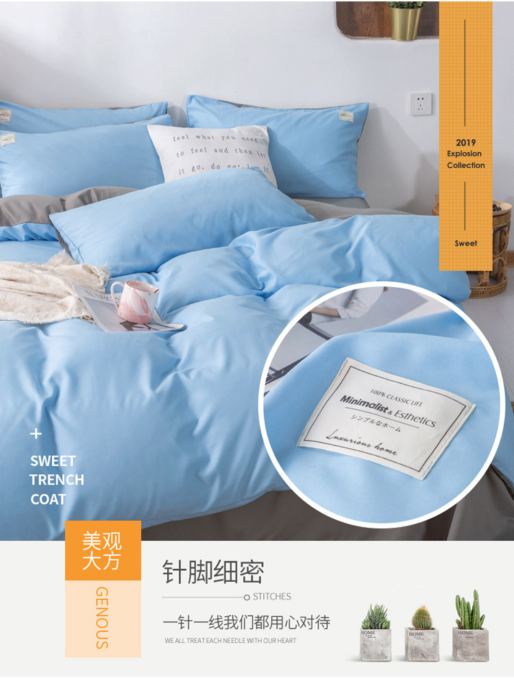商品名称:米粒 2020新款纯色磨毛四件套 天蓝+灰