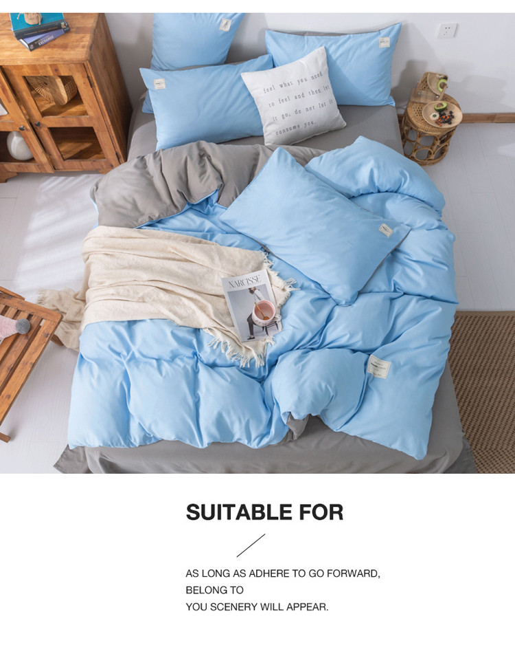 米粒 2020新款纯色磨毛四件套 天蓝+灰