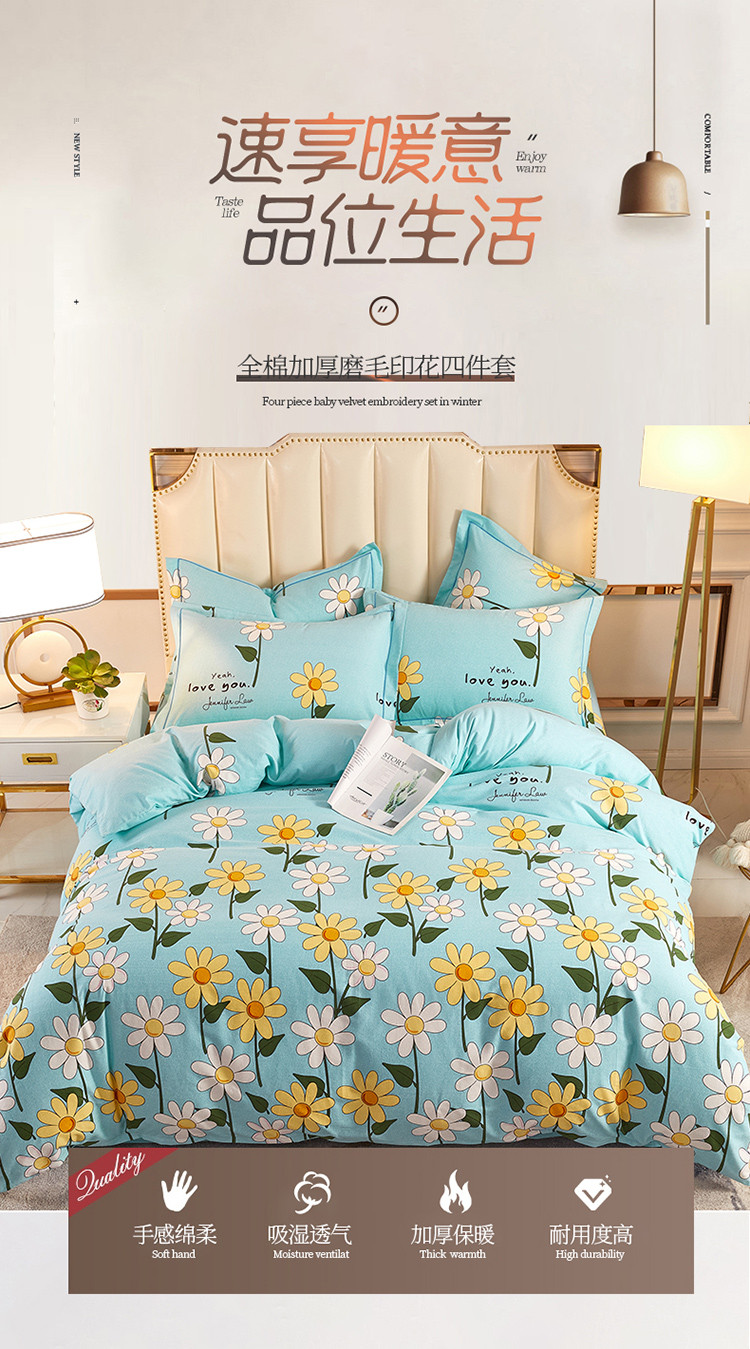 商品名称:雲归梦 2020新款全棉加厚磨毛四件套 向阳花-兰