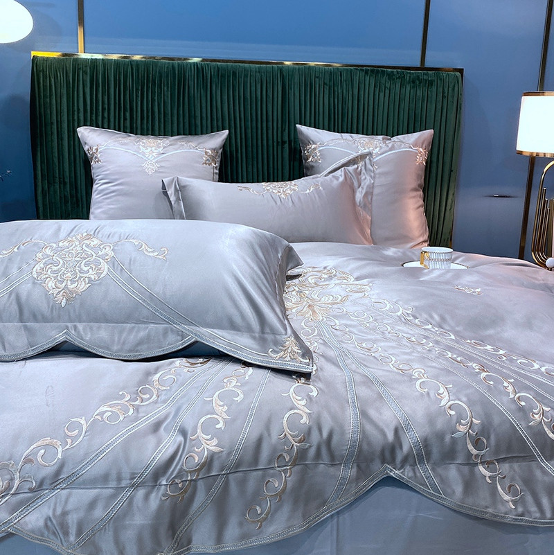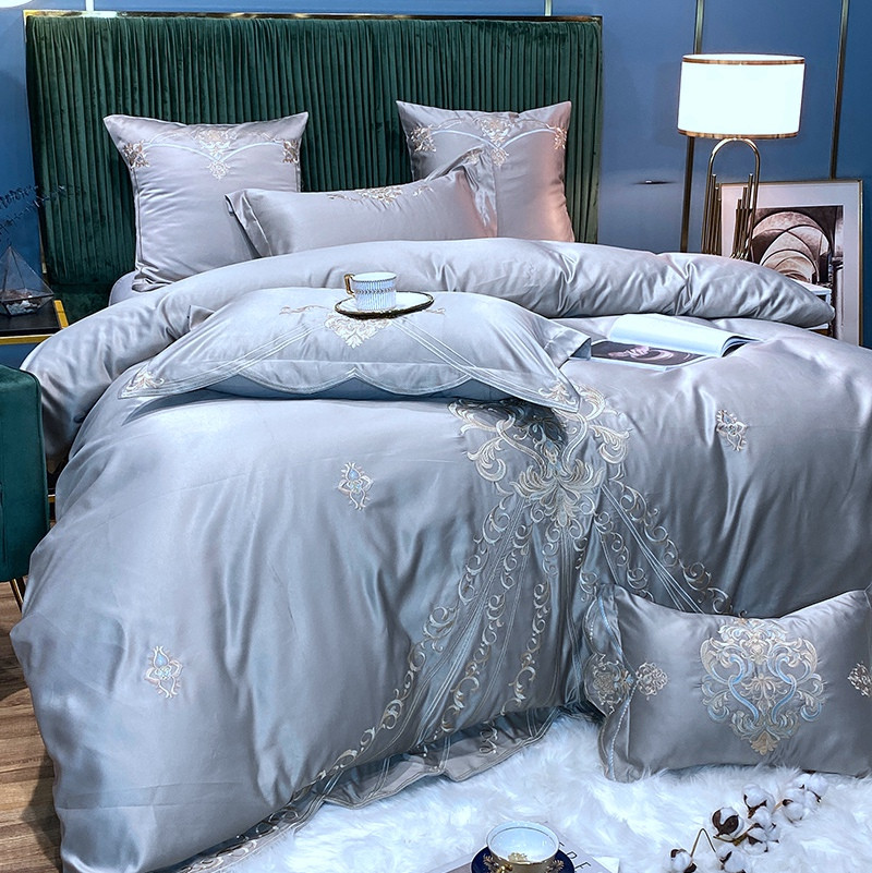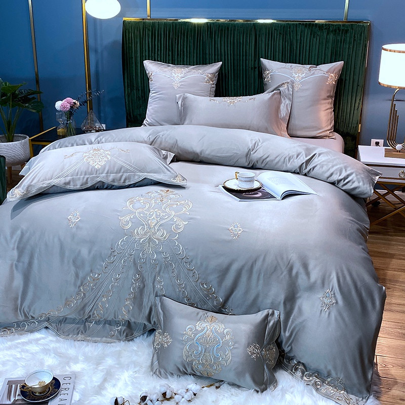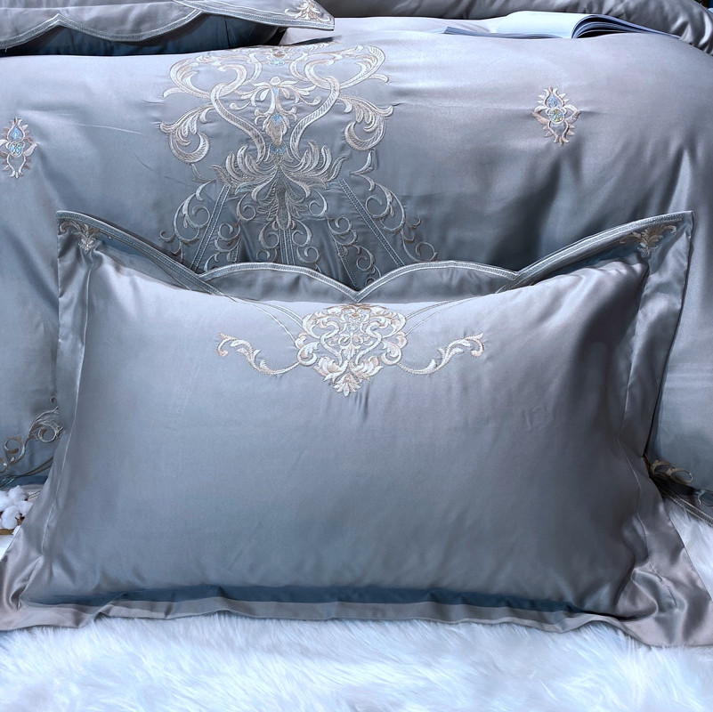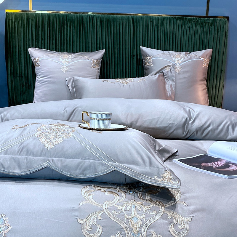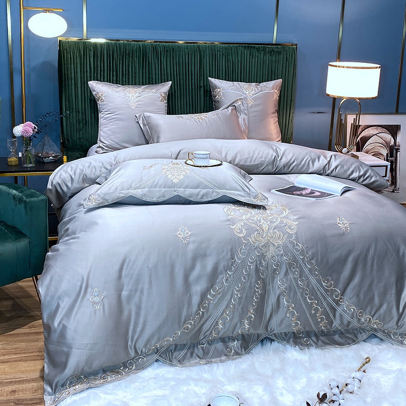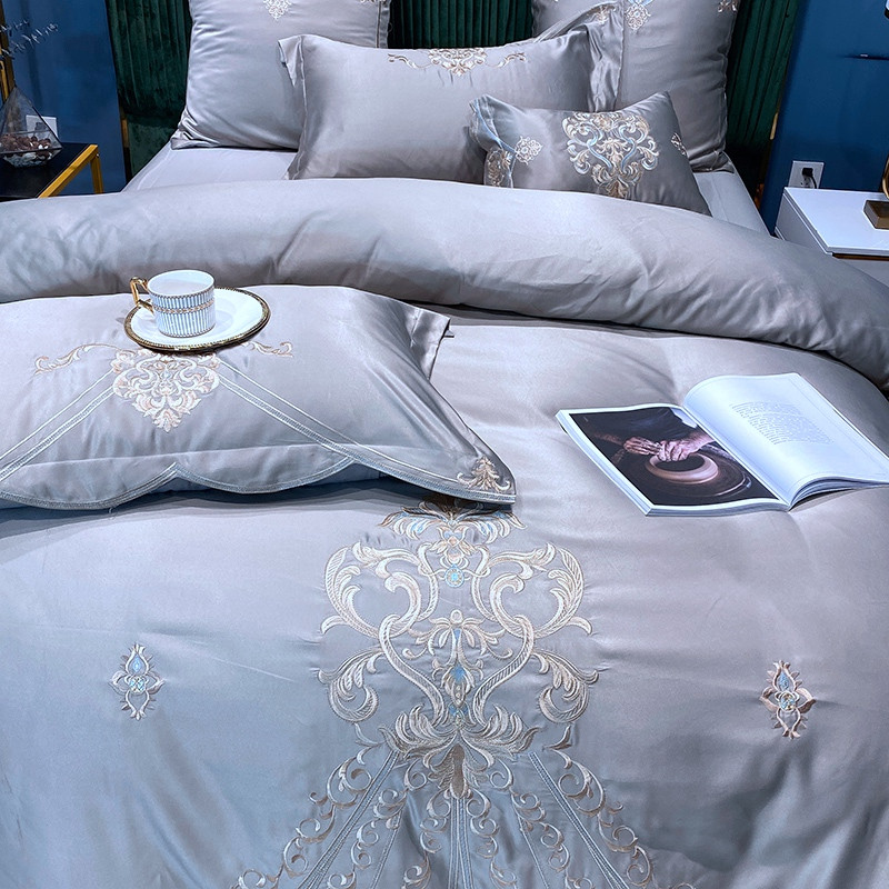 商品名称:宅家居60支贡缎真臻品丝B版纯棉刺绣卡瑞娜四件套实拍 卡瑞娜 -贵族灰