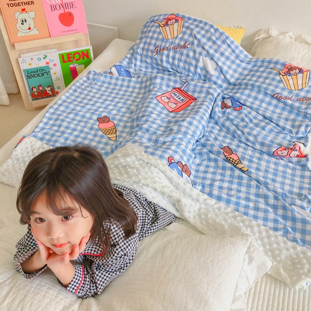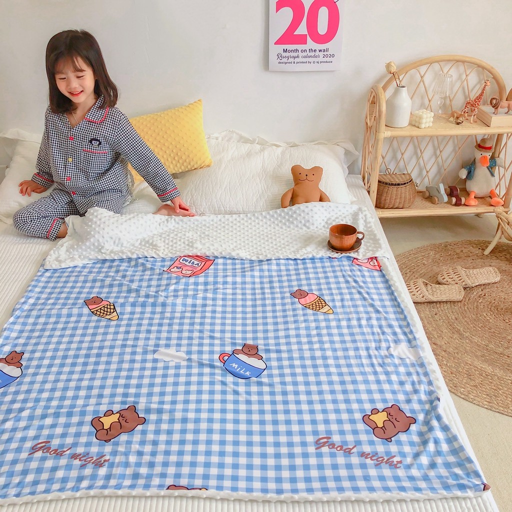 星期八 2020新款A类针织棉豆豆毯 蓝格小熊