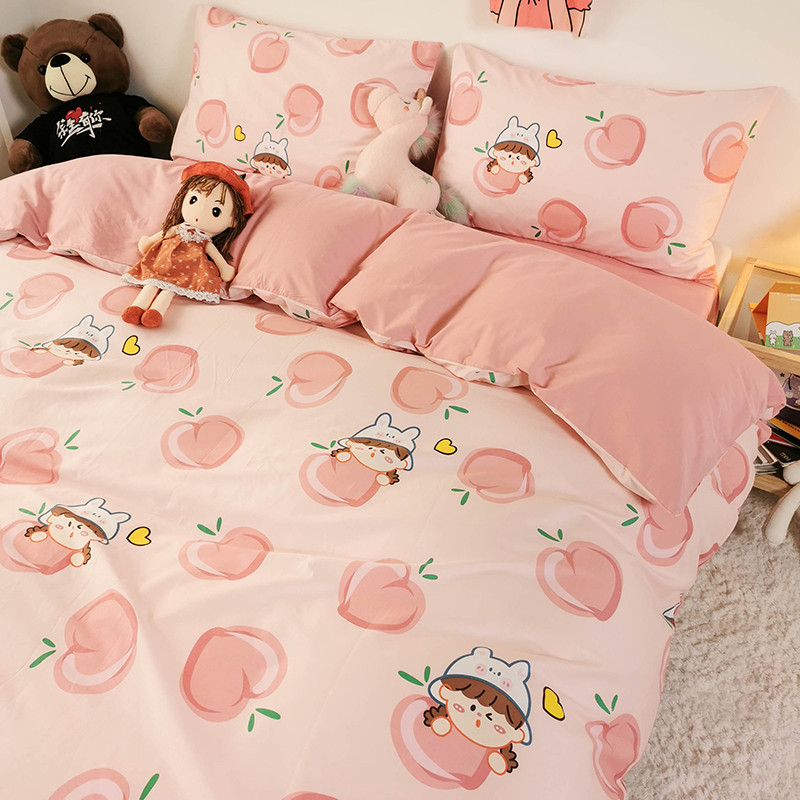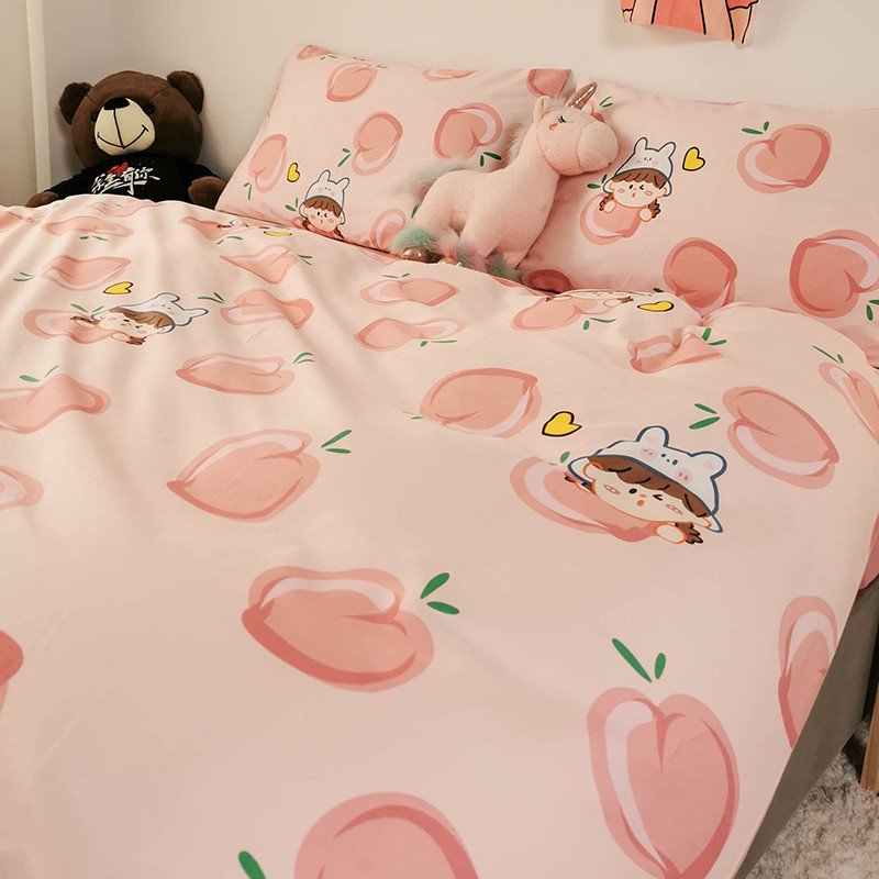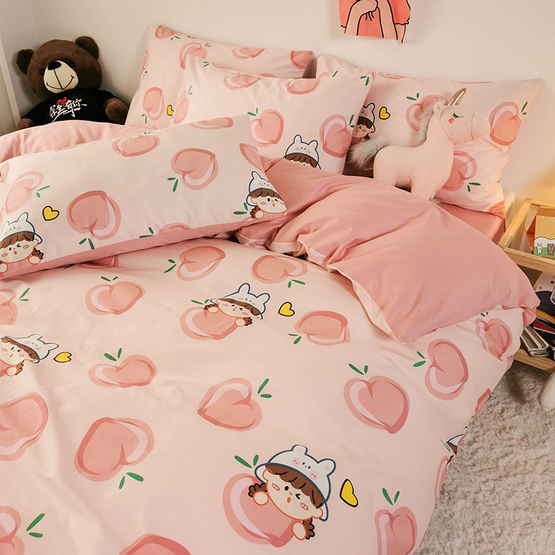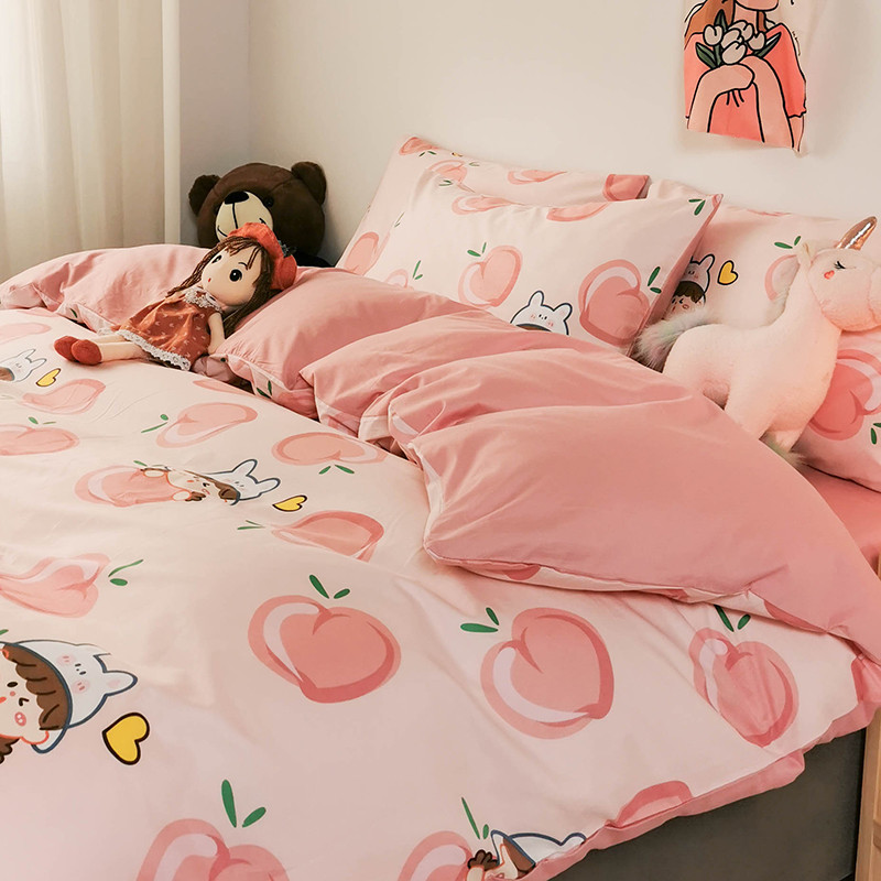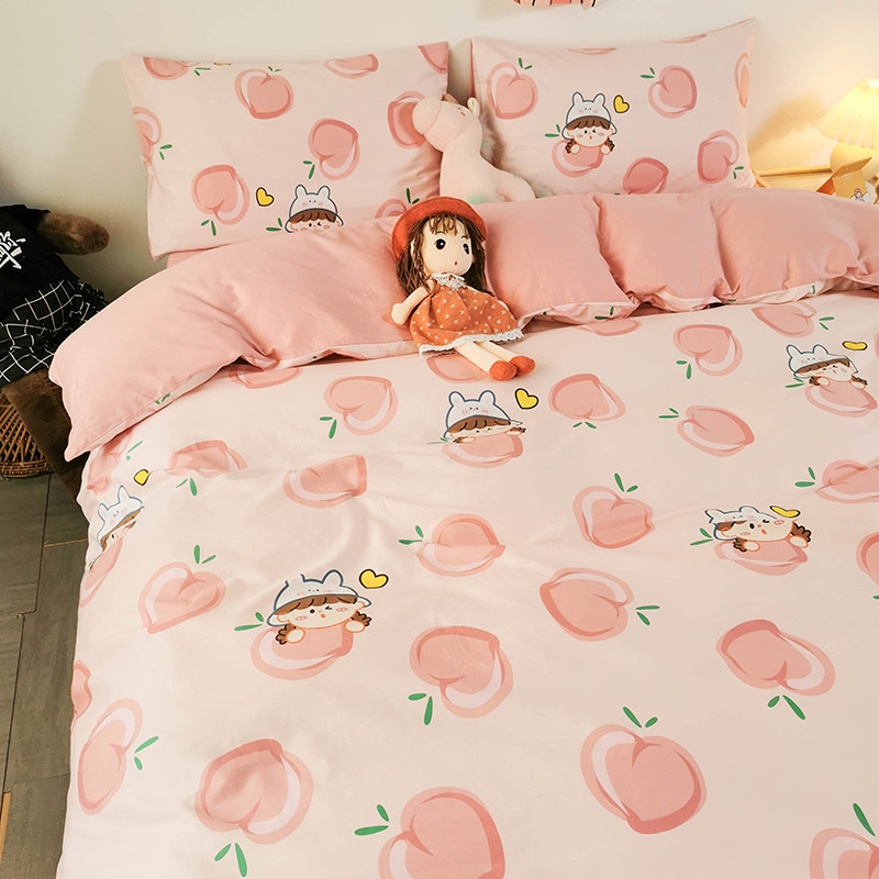 商品名称:HL原创 2020新款13372全棉小清新四件套实拍图 满杯蜜桃