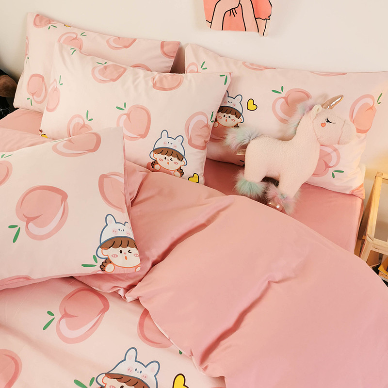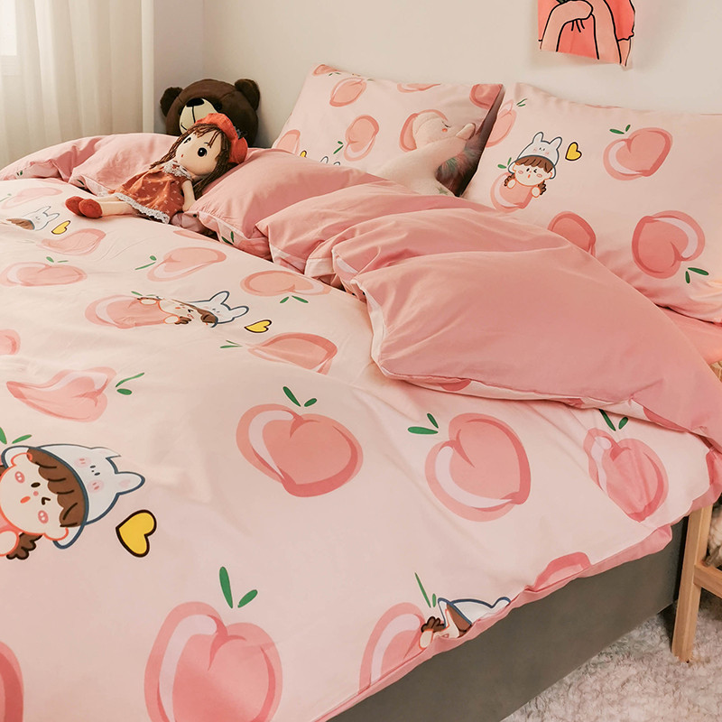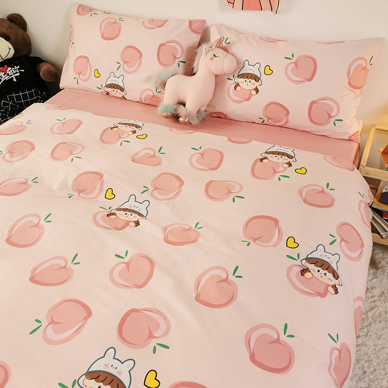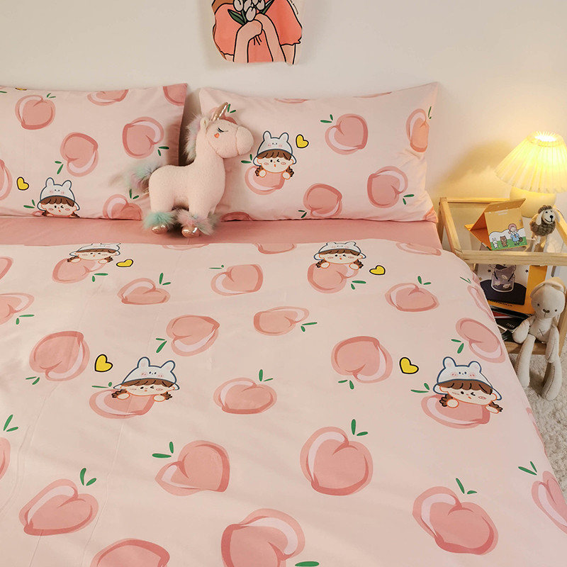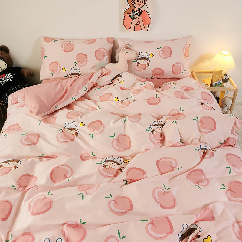 HL原创 2020新款13372全棉小清新四件套实拍图 满杯蜜桃