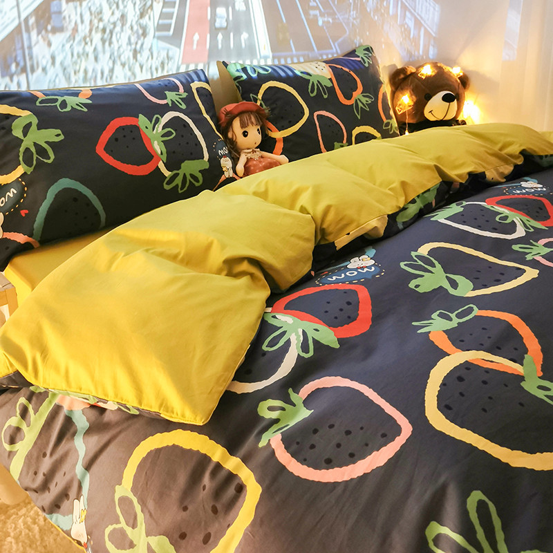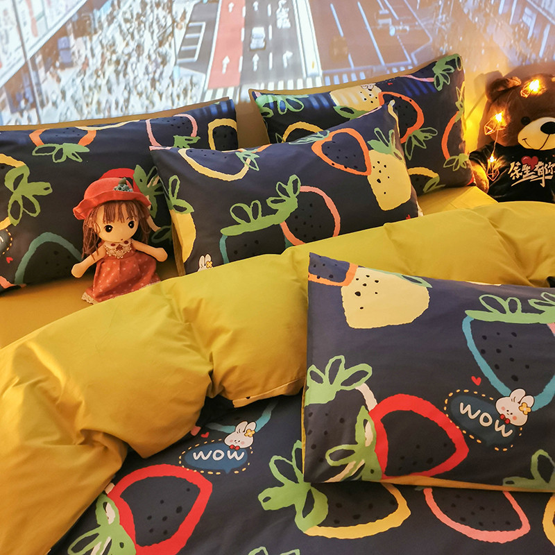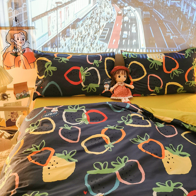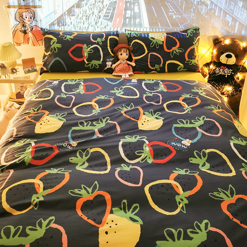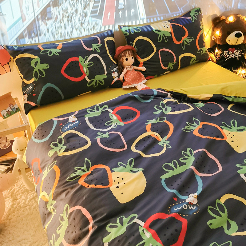 HL原创新款13372全棉四件套夜晚网红风实拍图 涂鸦草莓