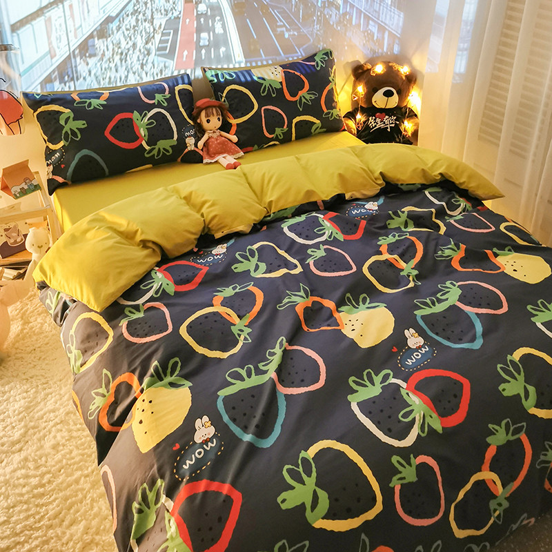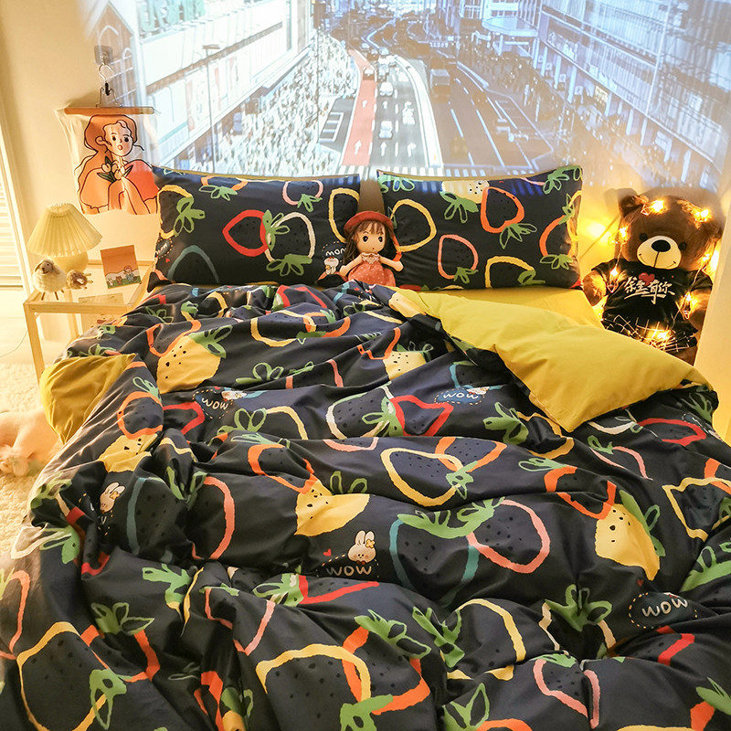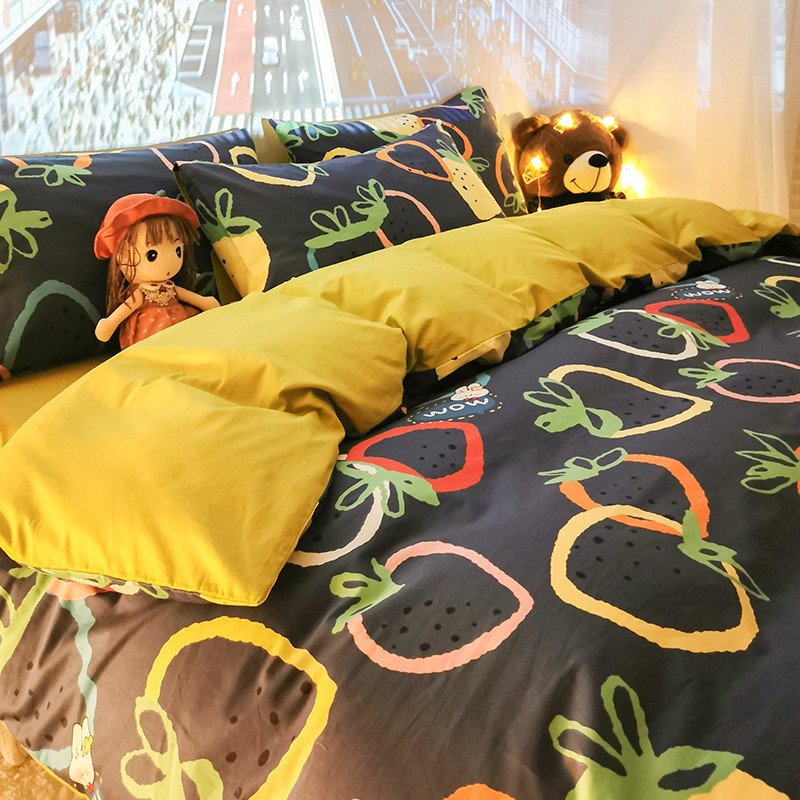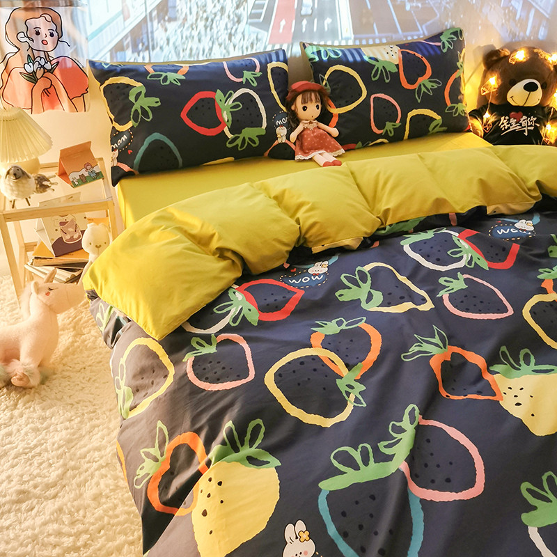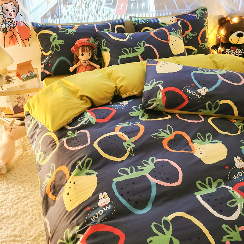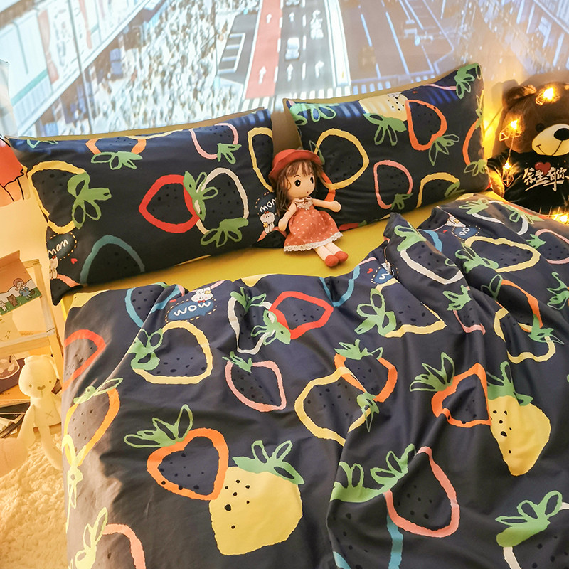 HL原创新款13372全棉四件套夜晚网红风实拍图 涂鸦草莓