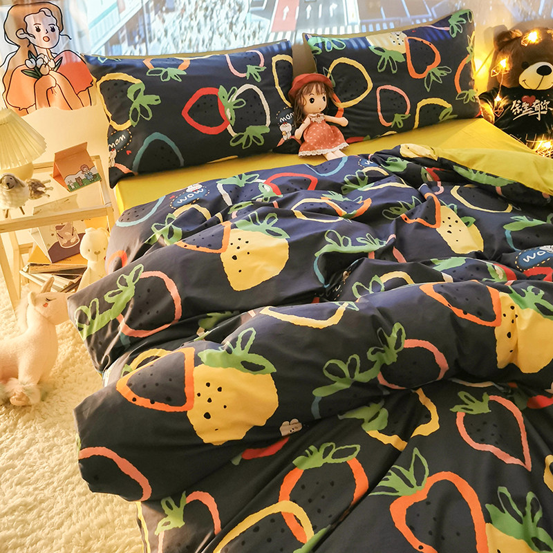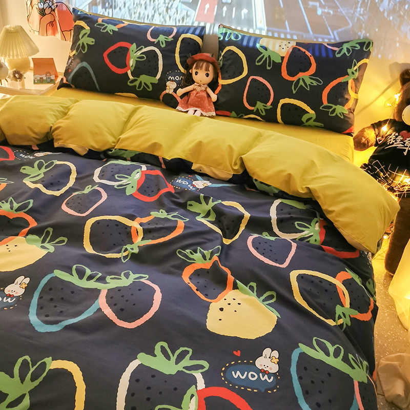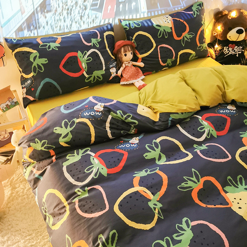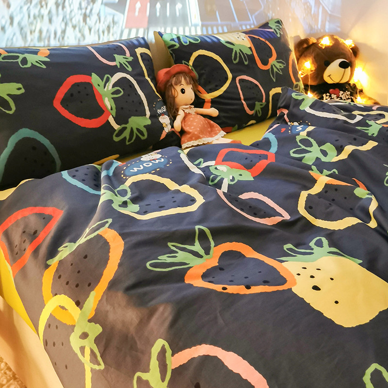 商品名称:HL原创新款13372全棉四件套夜晚网红风实拍图 涂鸦草莓