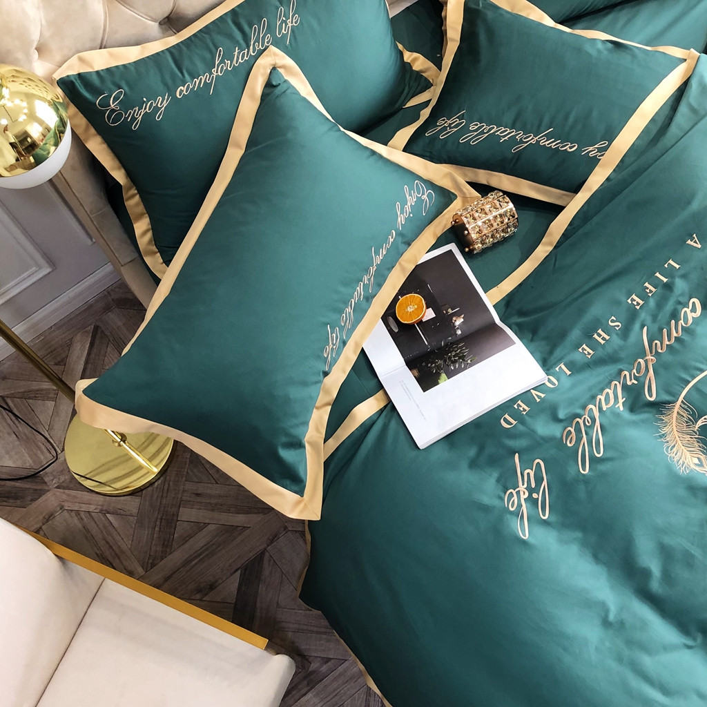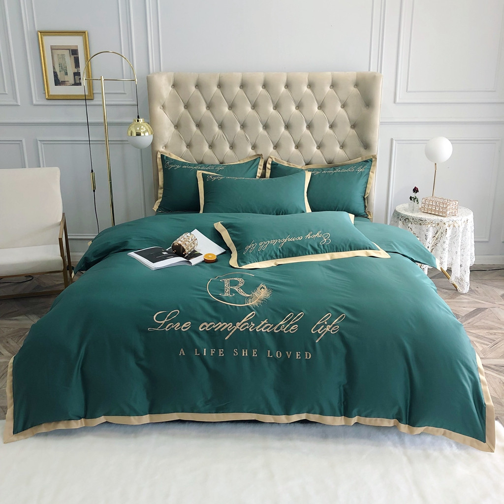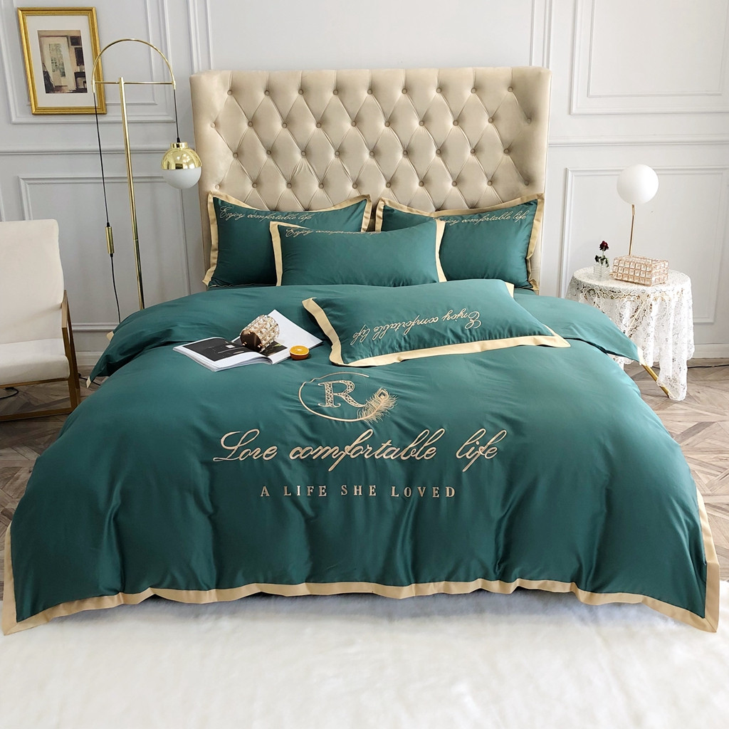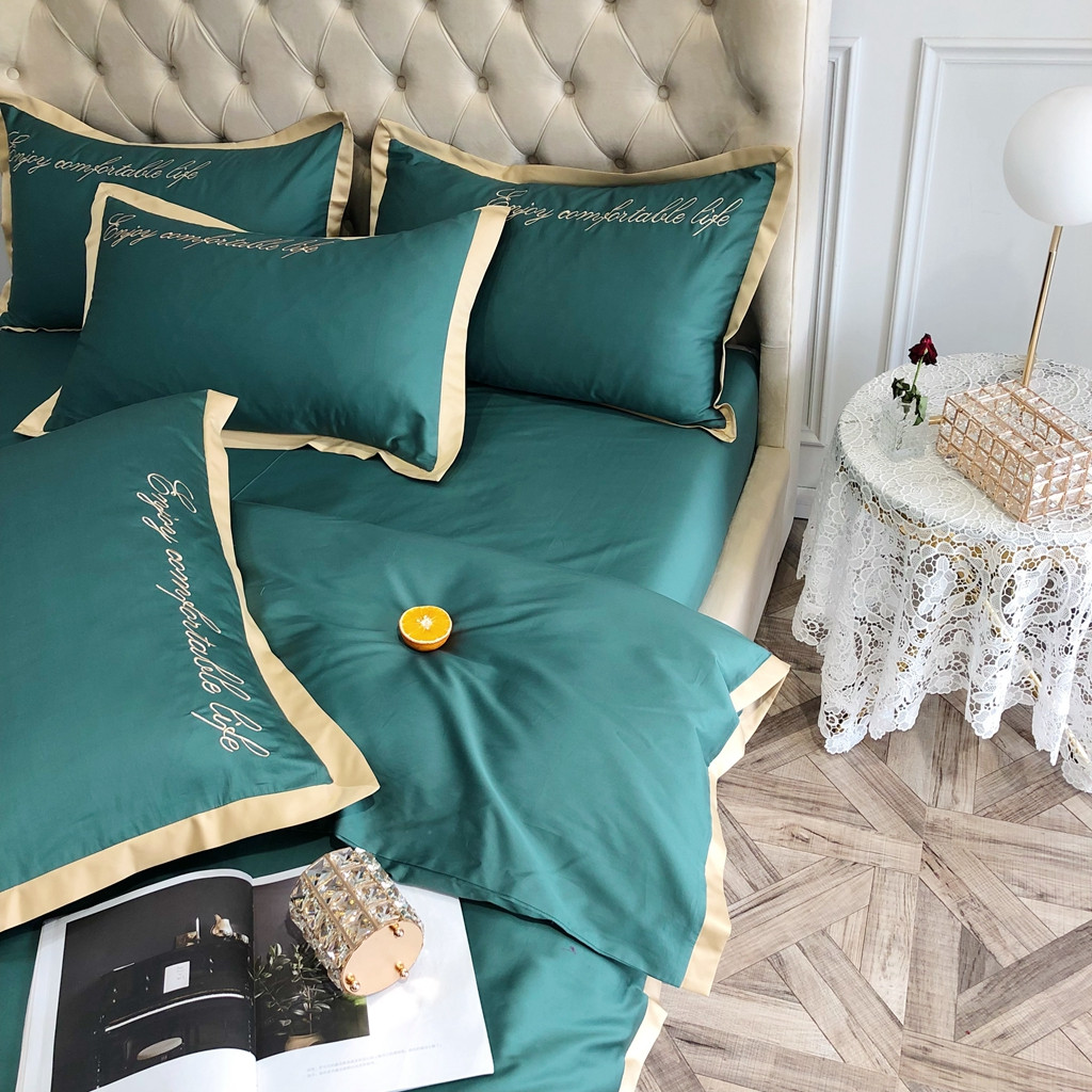 商品名称:馨蕊家居 2021秋冬新品60s长绒棉简爱四件套简爱-松花绿