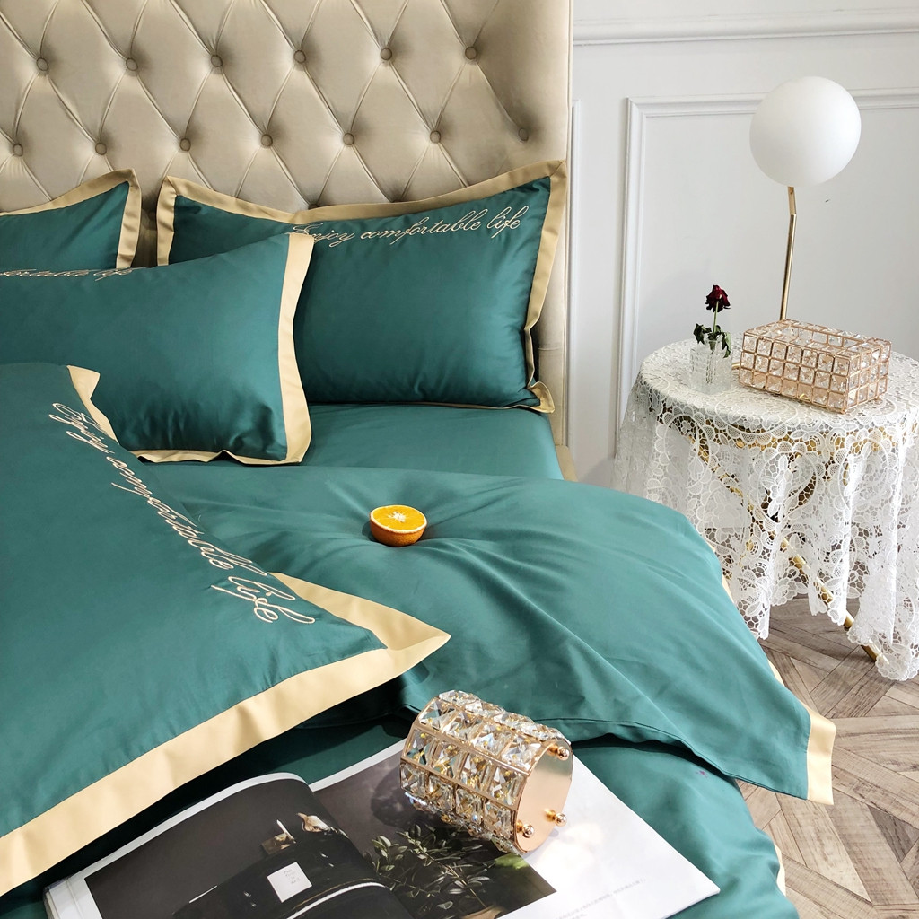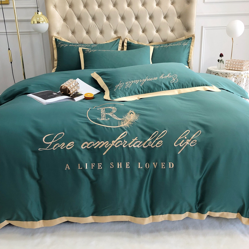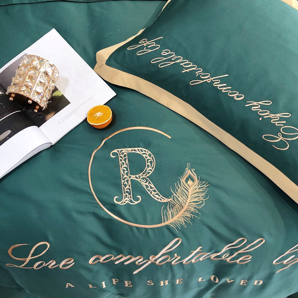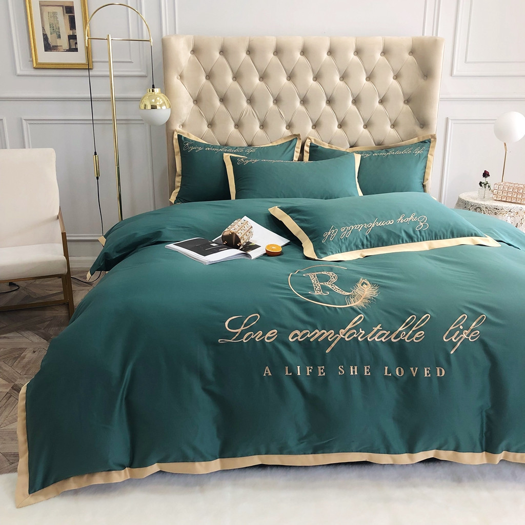 商品名称:馨蕊家居 2021秋冬新品60s长绒棉简爱四件套简爱-松花绿