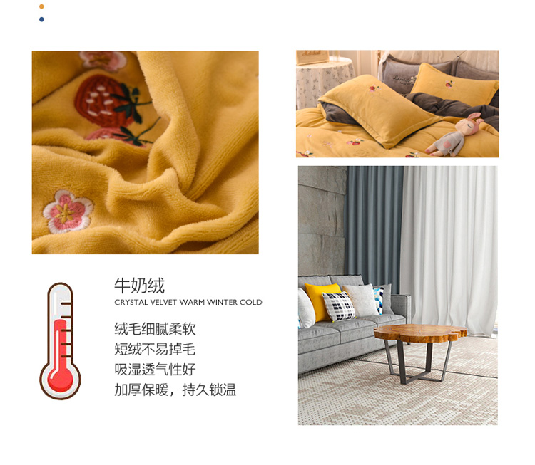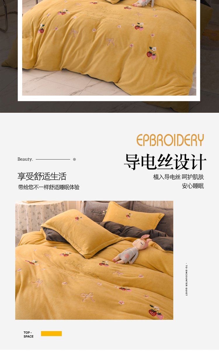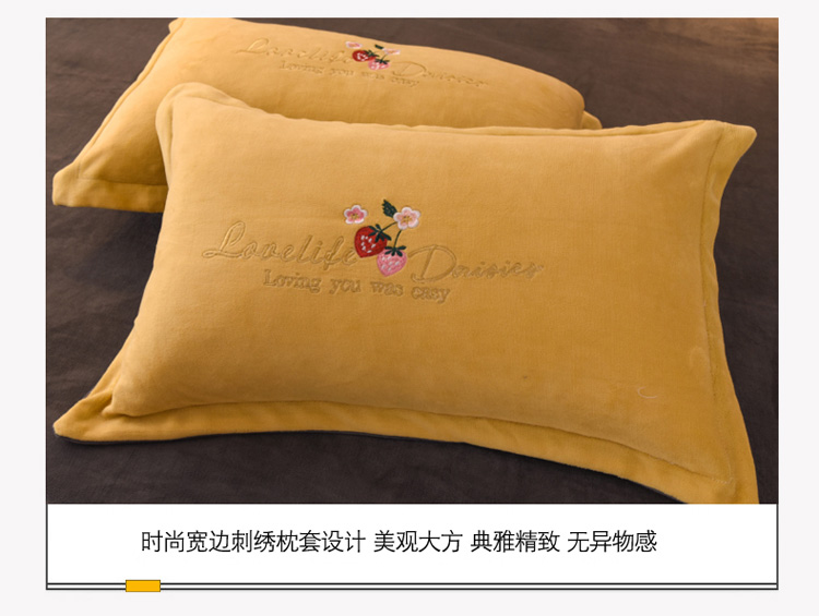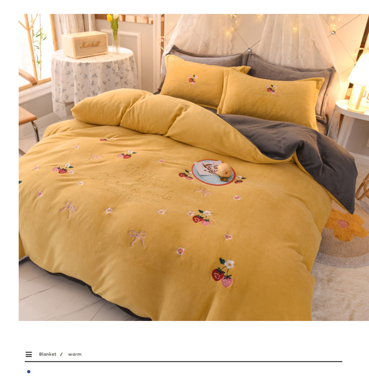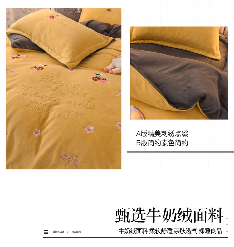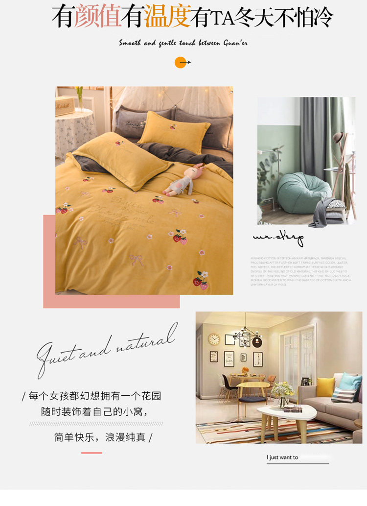 商品名称:捌月牛奶绒小清新刺绣四件套 甜心草莓-暖黄