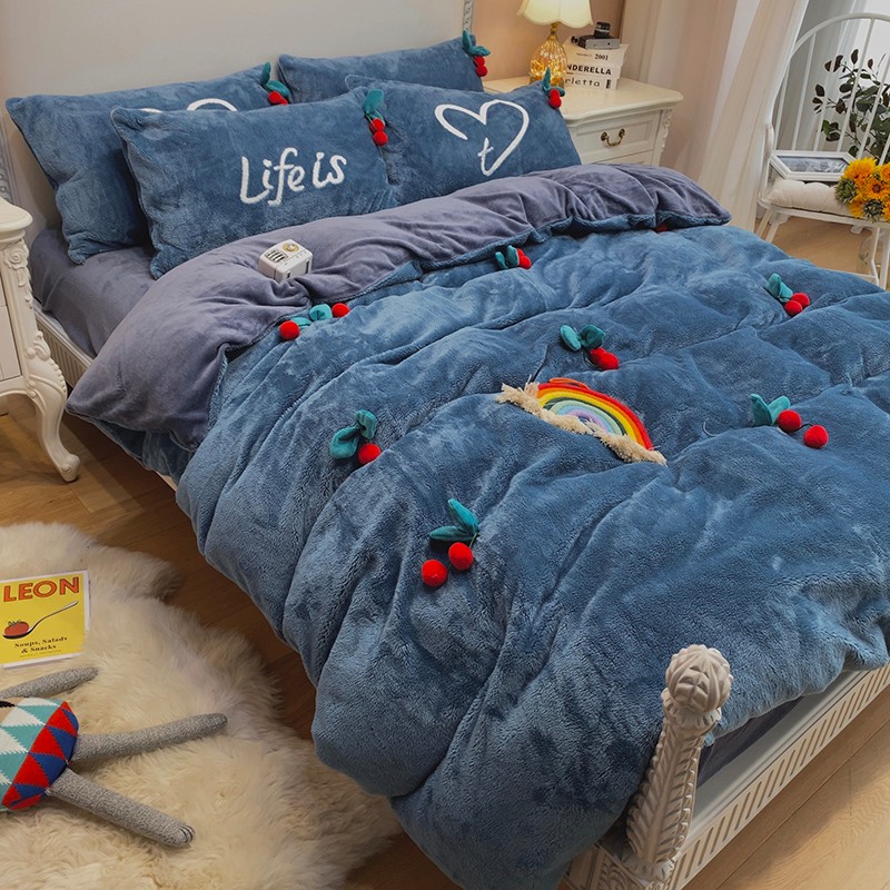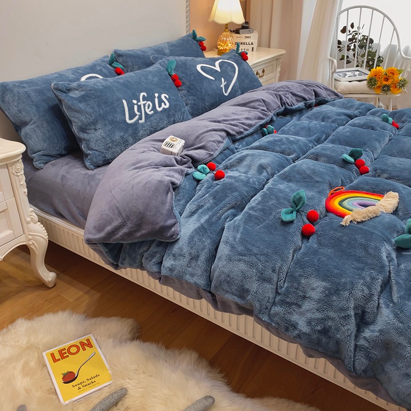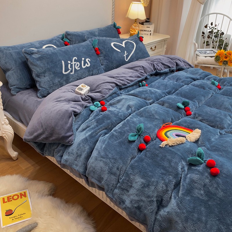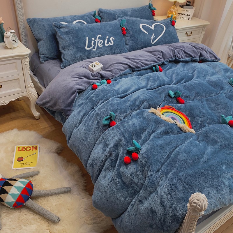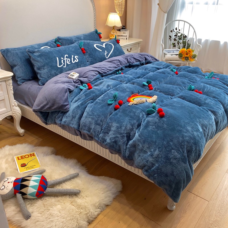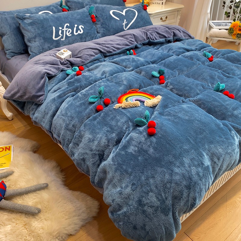 当前位置: 91家纺网 > 商品网购 > 床品套件 > 四件套 > 山羊绒四件套 > 三朵2020新款立体手工绣花山羊绒四件套 樱桃蓝