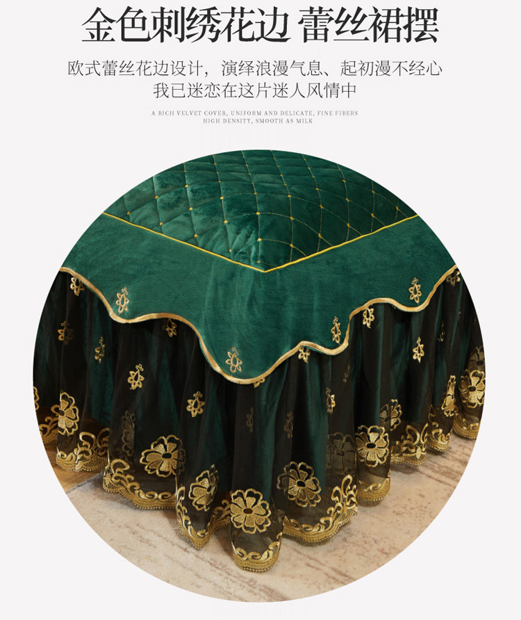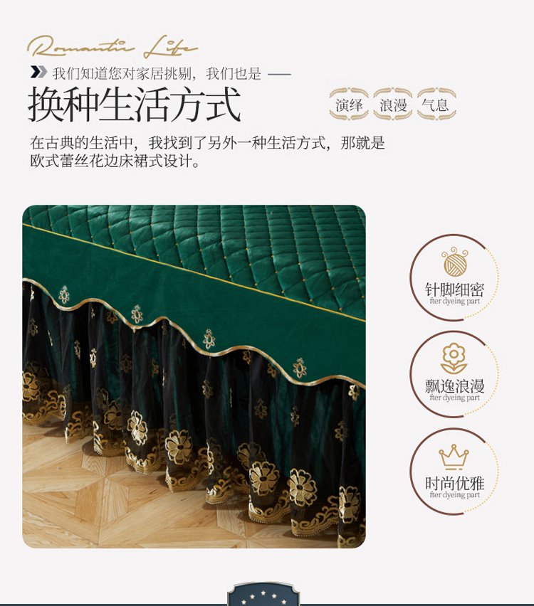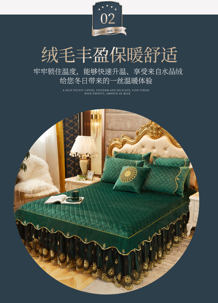 • 91家纺网 家纺一手货源 找家纺 菊上2021新款加厚水晶绒刺绣单床裙金色年华系列 福绿