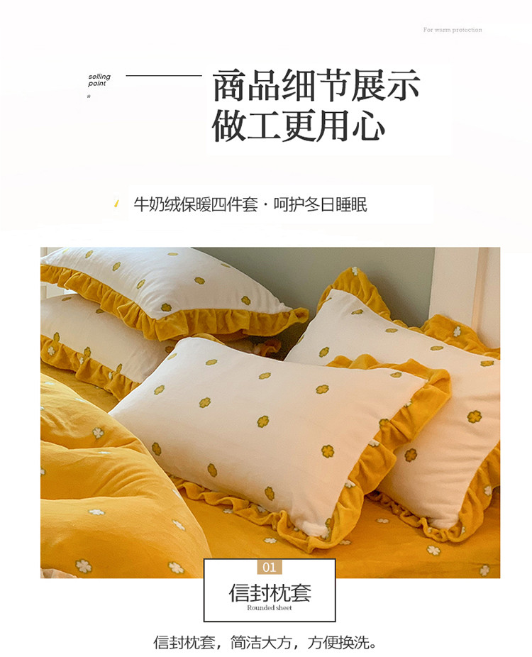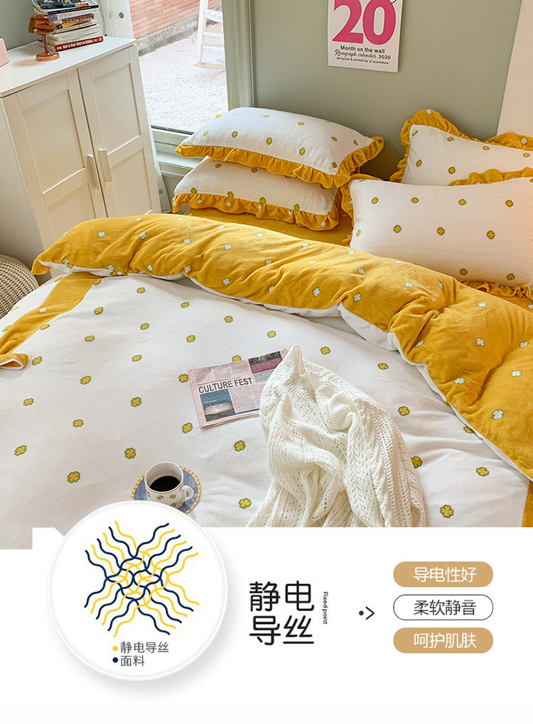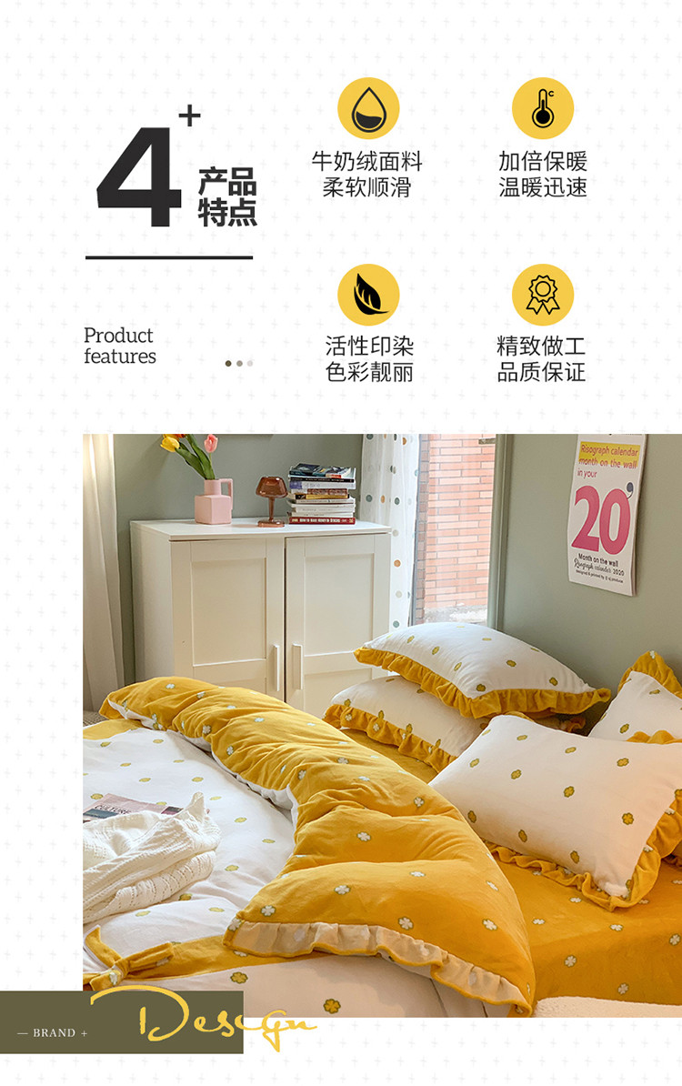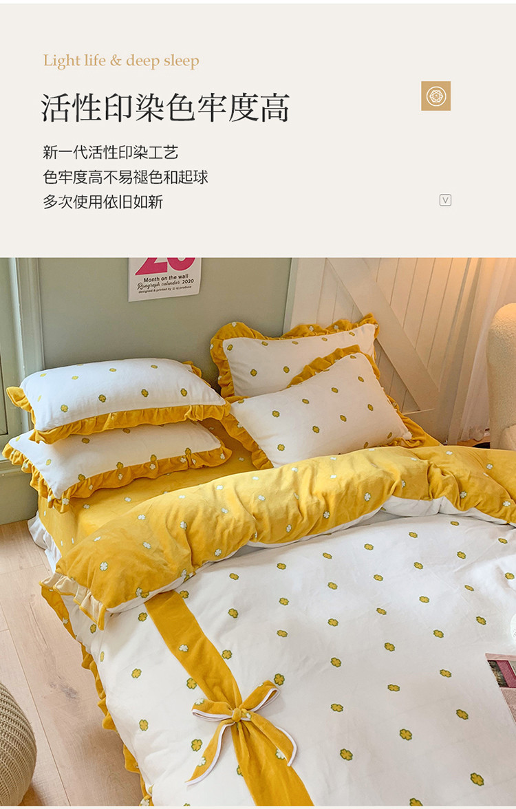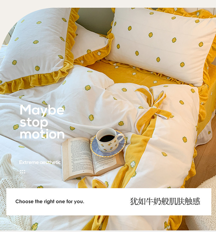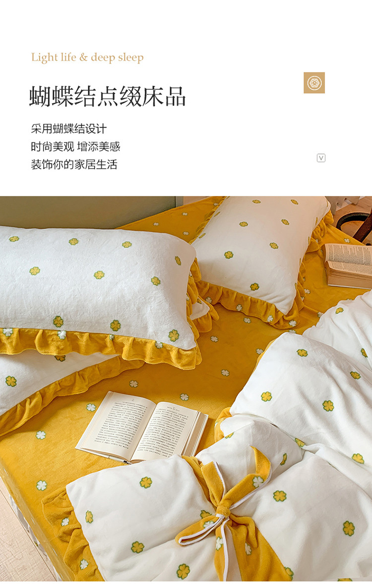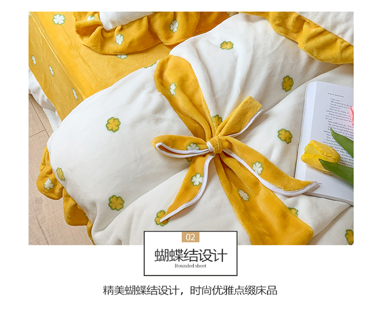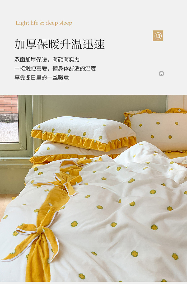 商品名称:眠屿 2020新款牛奶绒四件套 幸运四叶草-黄