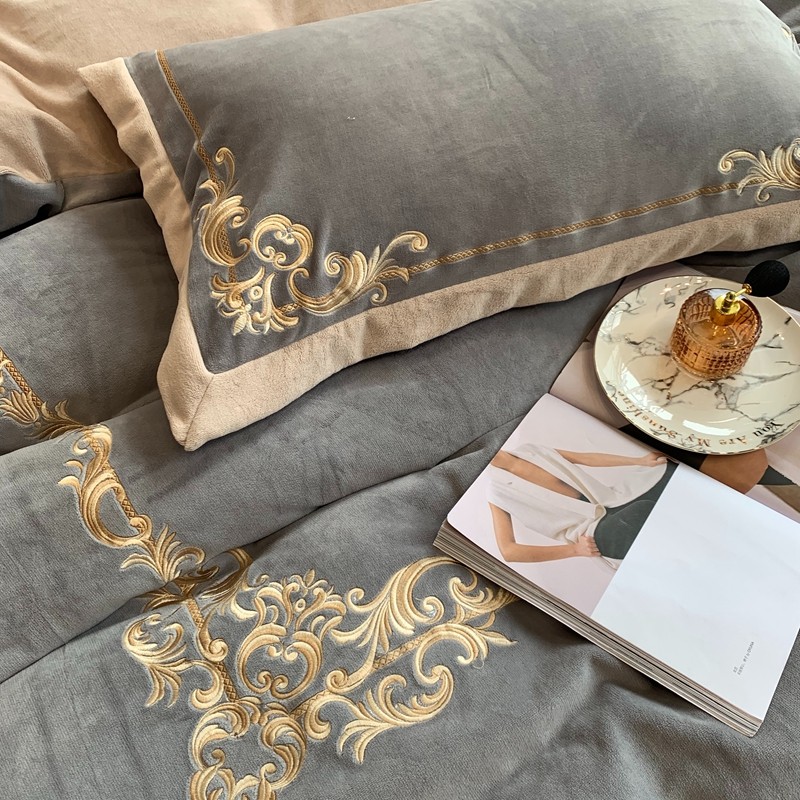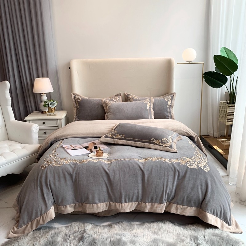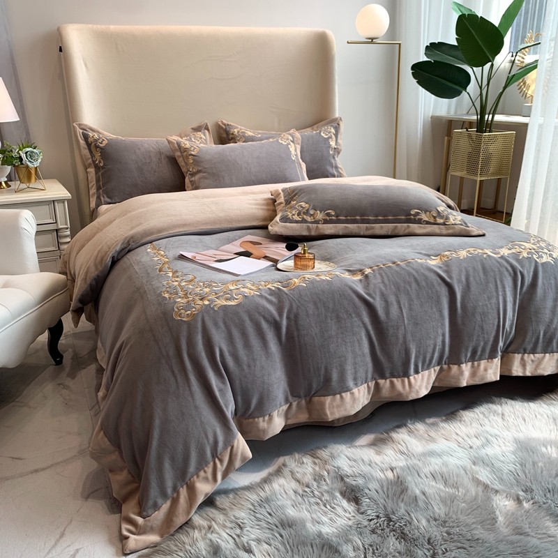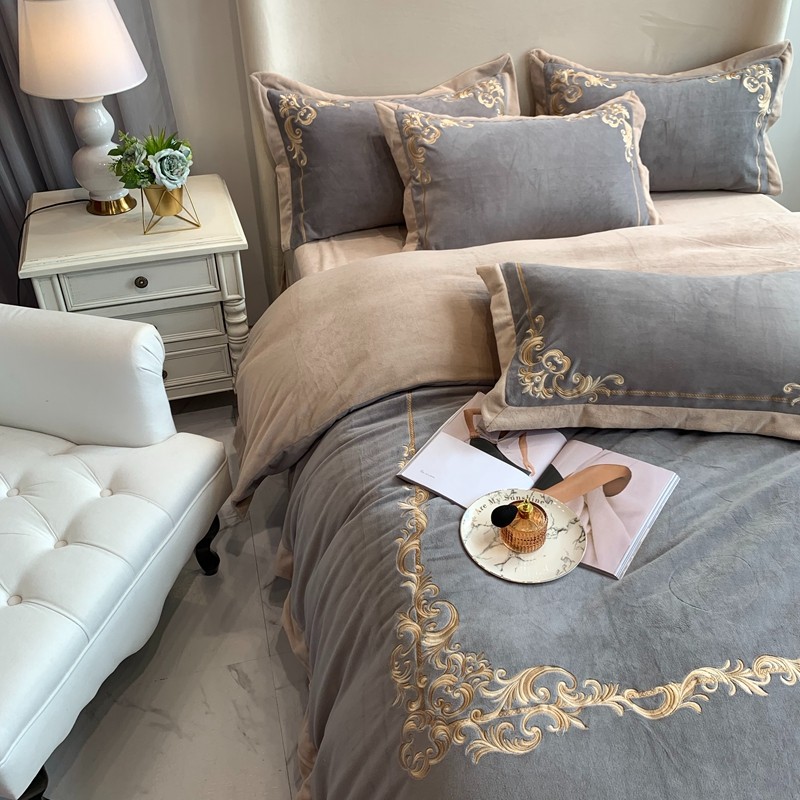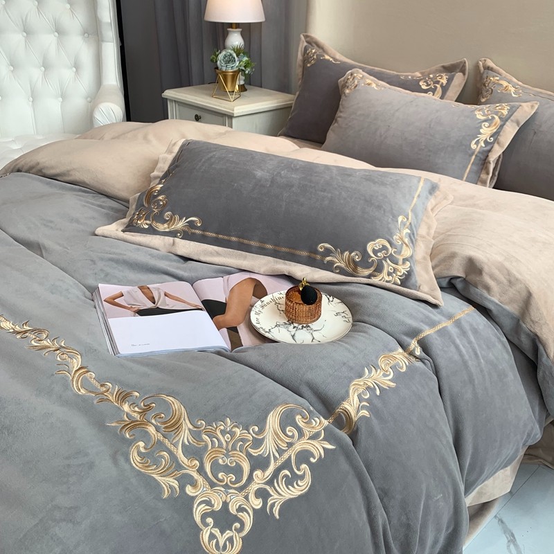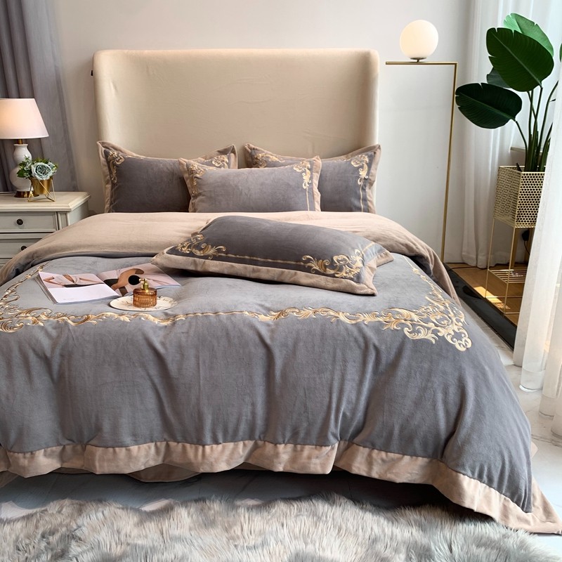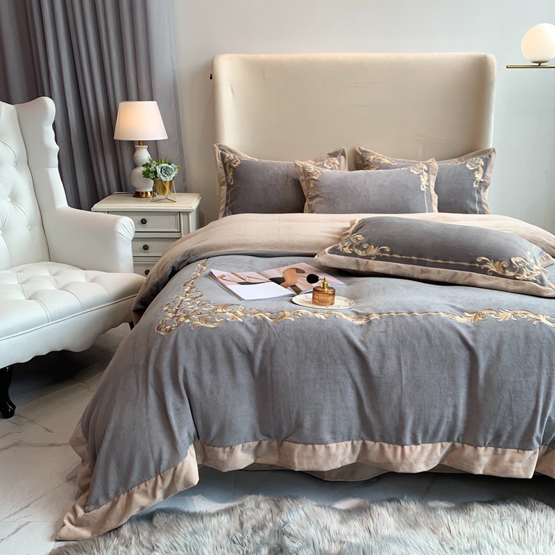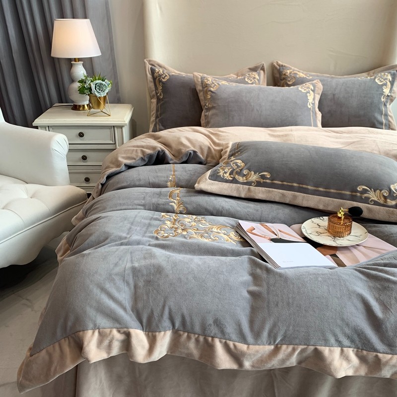 商品名称:馨蕊家居 2021新款秋冬轻奢煦暖绒四件套 巴比伦-高级灰