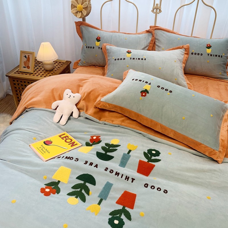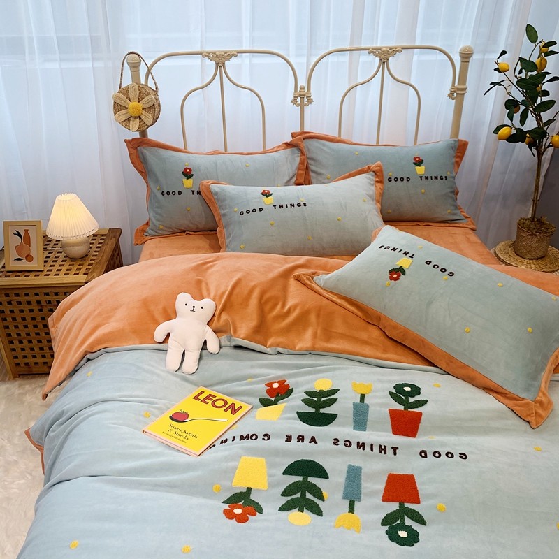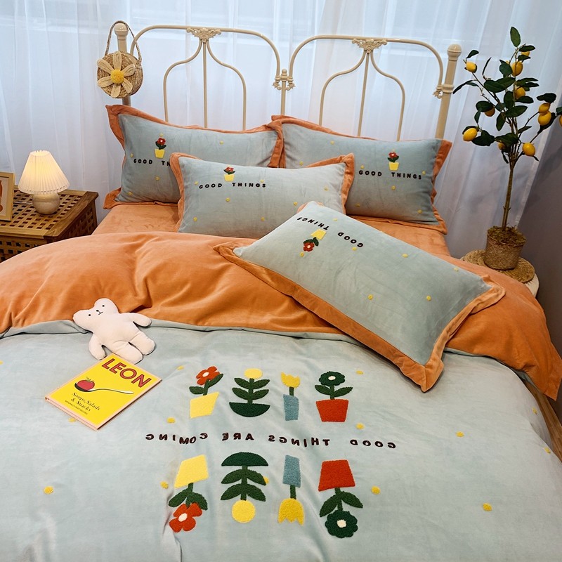 馨蕊家居 2021新款秋冬轻奢煦暖绒四件套 蜜可-湖水蓝