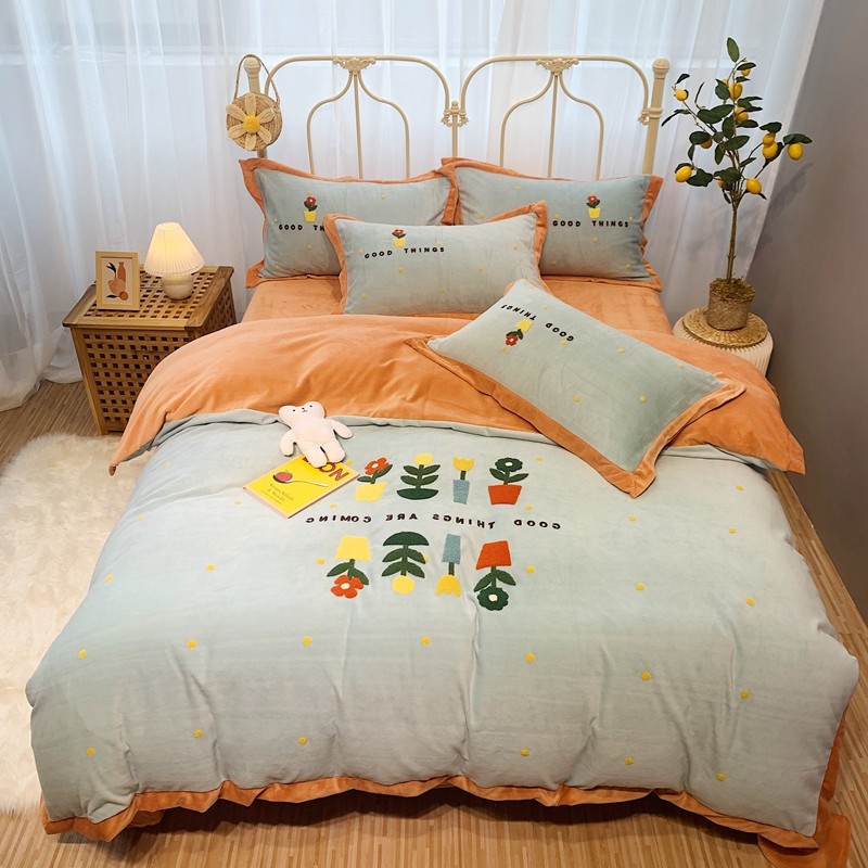 商品名称:馨蕊家居 2021新款秋冬轻奢煦暖绒四件套 蜜可-湖水蓝